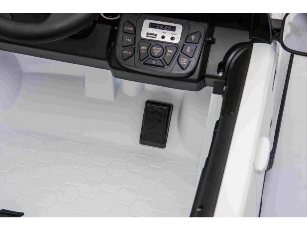 A vezérlés nagyon egyszerű – csak nyomja meg a gázpedált, és simán indul. Automatikusan leáll, ha leveszi a lábát a pedálról. A szülők a távirányítóval irányíthatják az utazást, veszély esetén megnyomhatják a Stop biztonsági gombot , amely azonnal leállítja az autót és kikapcsolja annak összes funkcióját.