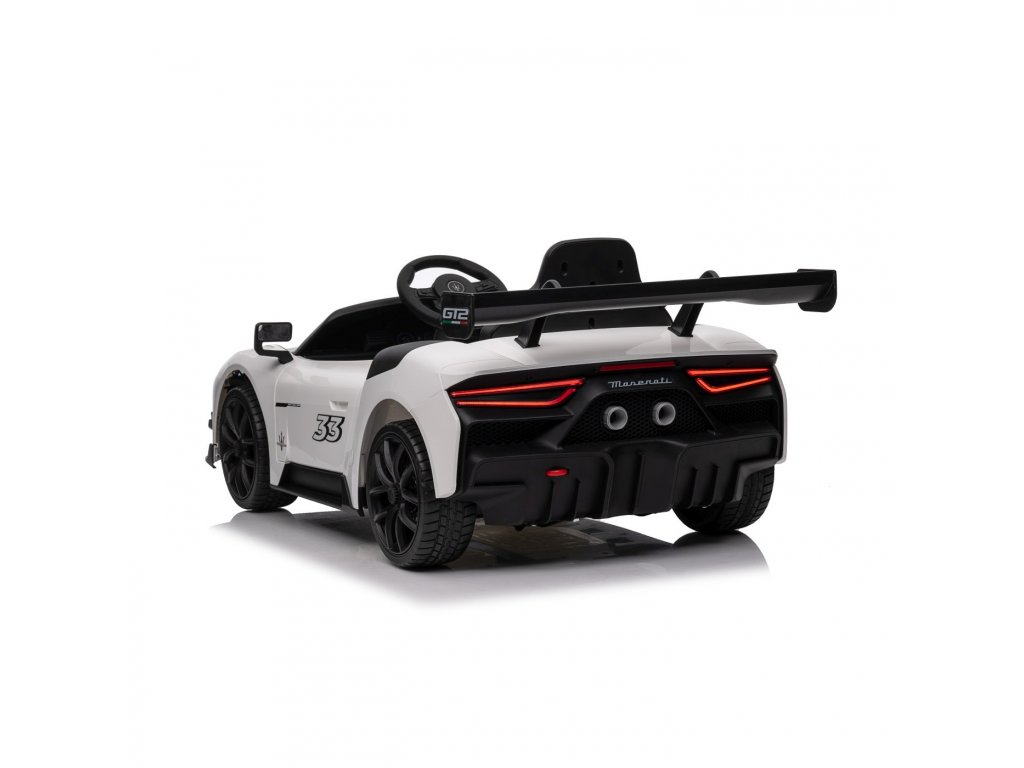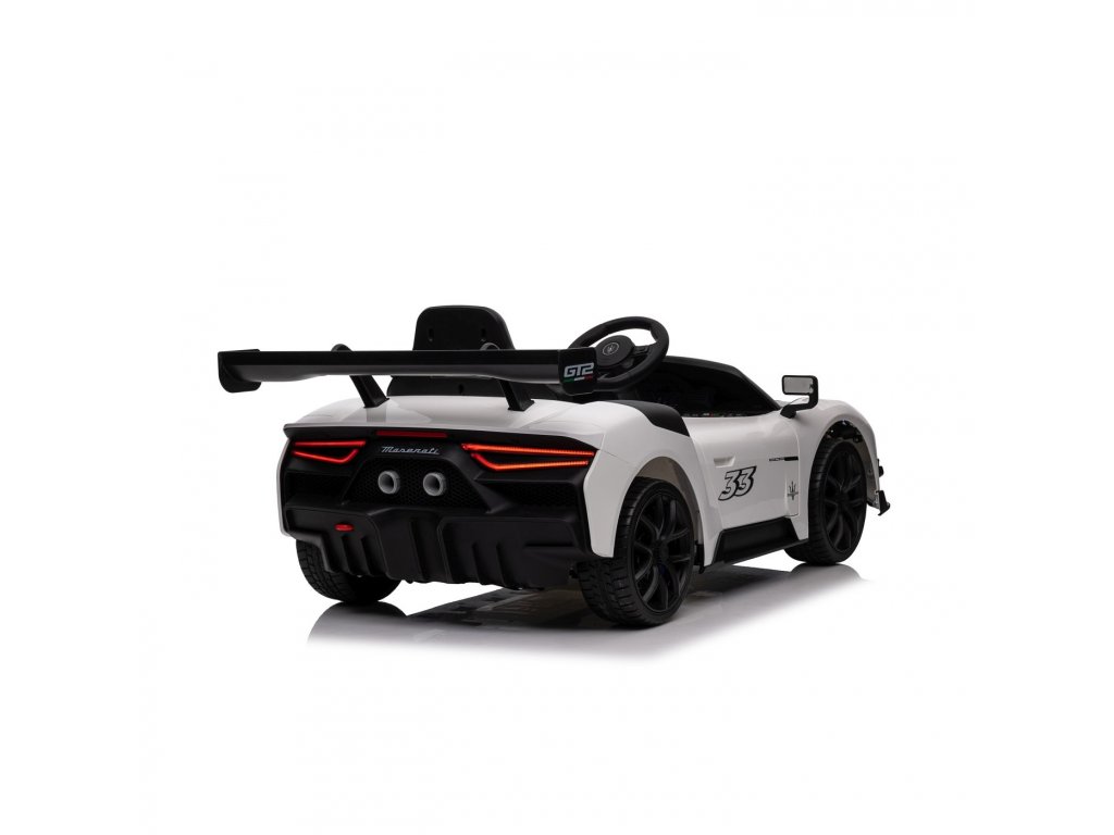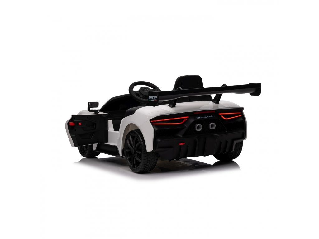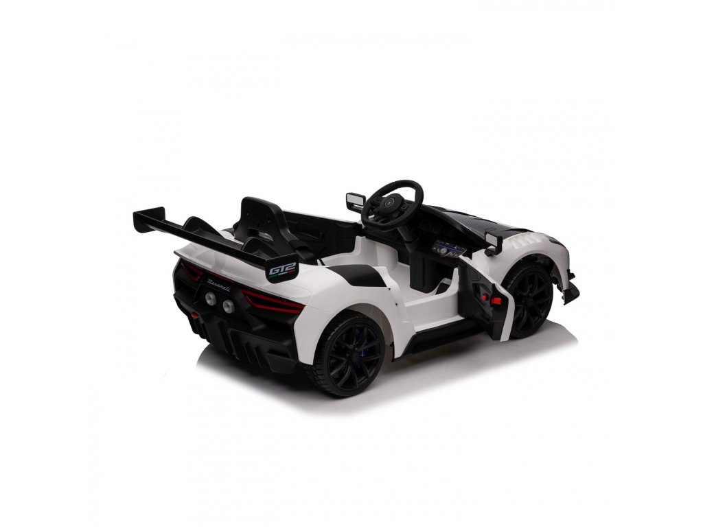 Gyermek jogosítvánnyal rendelkező játékautó Maserati MC20 GT2 gazdag felszereltséggel és innovatív dizájnnal. A játékautó belsejében biztonsági övvel ellátott ülés, Bluetooth-os zenepanel, rádió , AUX, MP3, USB bemenetek és dallamgombok találhatók. Világítsa meg utazását első és hátsó LED lámpákkal .