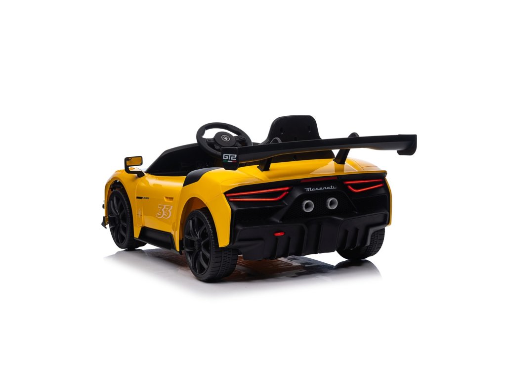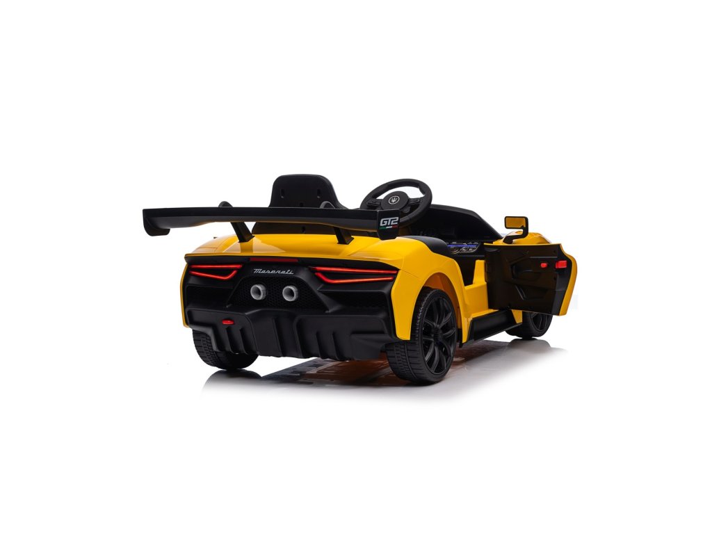 Gyermek jogosítvánnyal rendelkező játékautó Maserati MC20 GT2 gazdag felszereltséggel és innovatív dizájnnal. A játékautó belsejében biztonsági övvel ellátott ülés, Bluetooth-os zenepanel, rádió , AUX, MP3, USB bemenetek és dallamgombok találhatók. Világítsa meg utazását első és hátsó LED lámpákkal .