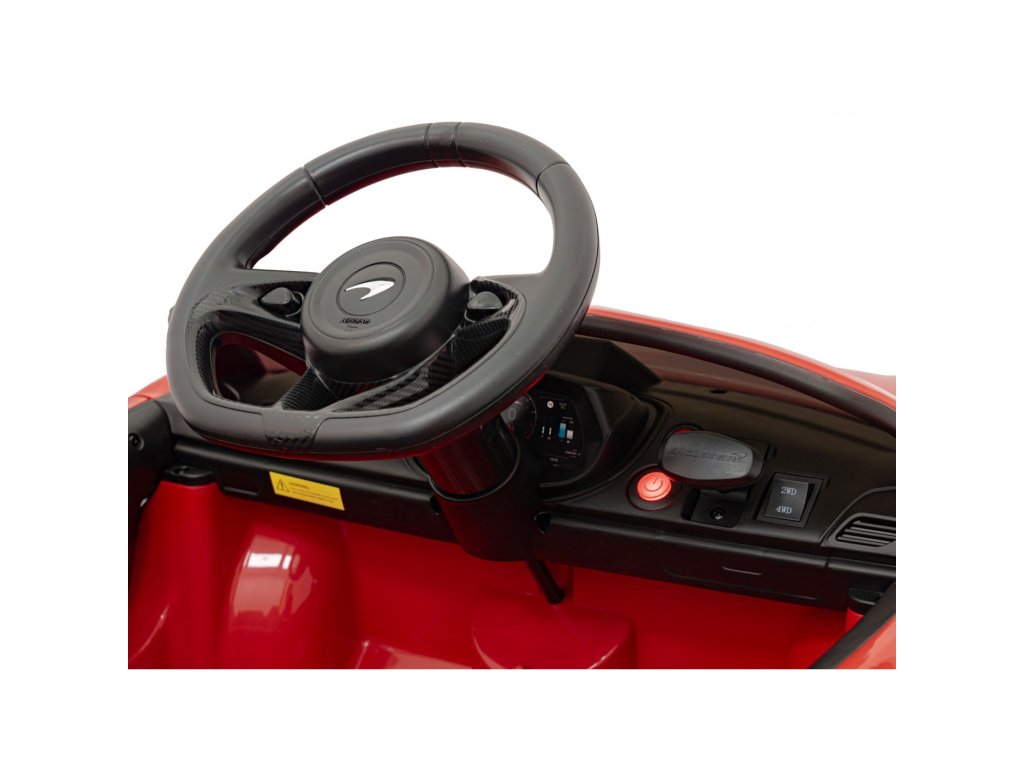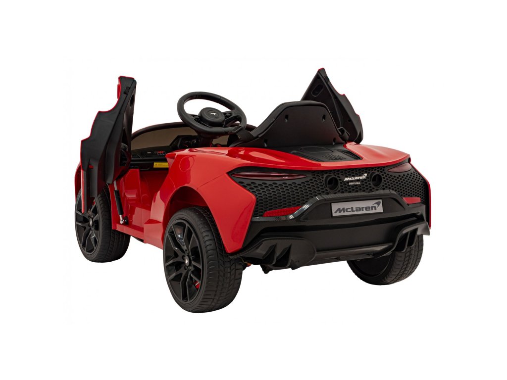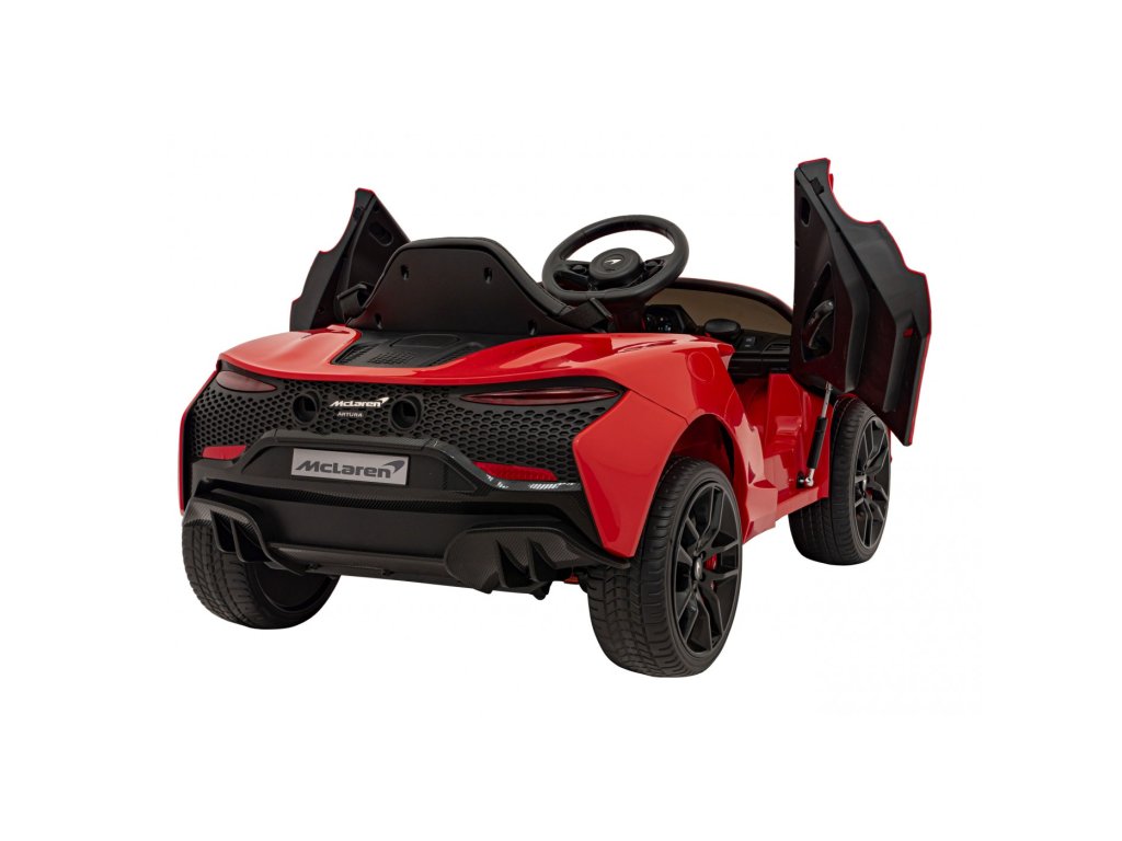 A McLaren Artura elektromos autó négy motorral rendelkezik, amelyek összteljesítménye 140 W , és egy akkumulátora 12 V 10 Ah kapacitású. Az EVA hab kerekek és az ökológiai bőrrel borított ülés gondoskodik a kényelmes utazásról. Az MP3-as, USB-s és AUX-os zenepanel minden bizonnyal kellemesebbé teszi az utazást a gyermek számára . A játékautó teherbírása 25 kg . A játékautó első LED világítással és nyitható ajtókkal rendelkezik.