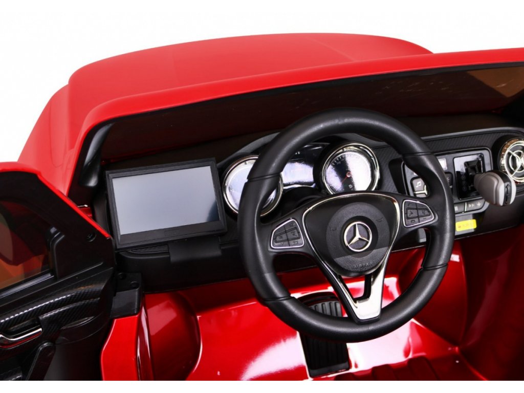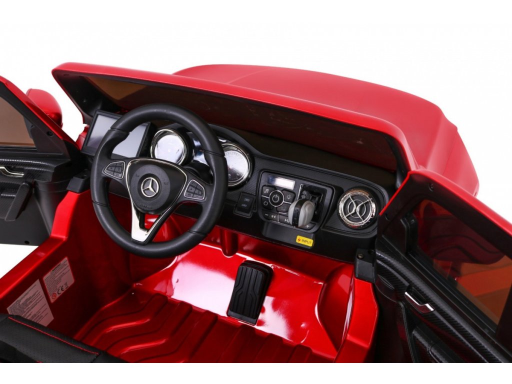 A játékautó belseje fekete ökológiai bőrből készült üléssel, MP4 audio panellel és a kormányon található gombokkal van felszerelve. A játékautó lámpakapcsolóval és menetválasztó gombbal rendelkezik (2 vagy 4 motor).