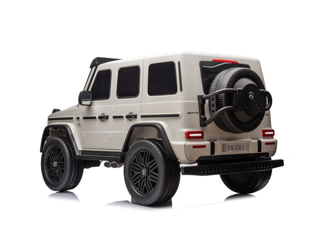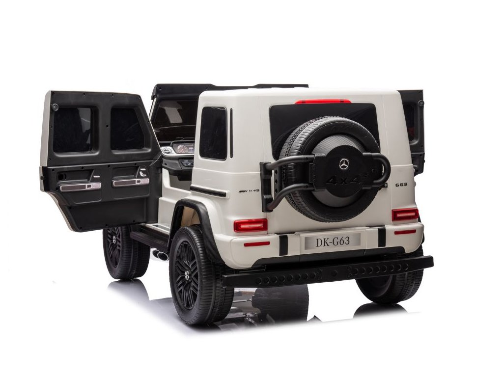 A Mercedes G63 XXL elektromos játékautó nem hiányozhat egyetlen gyerekgarázsból sem. A játékautó 2x24V 7Ah akkumulátorral működik. A felszereltség része az ökobőrrel borított ülés, az EVA hab kerekek , valamint az első és hátsó LED-es világítás . A kocsi maximális terhelhetősége 80 kg . Utazás közben a gyermeket minden bizonnyal lenyűgözi a zenepanel USB-vel, MP3-mal, MP4- vel és Bluetooth- al .