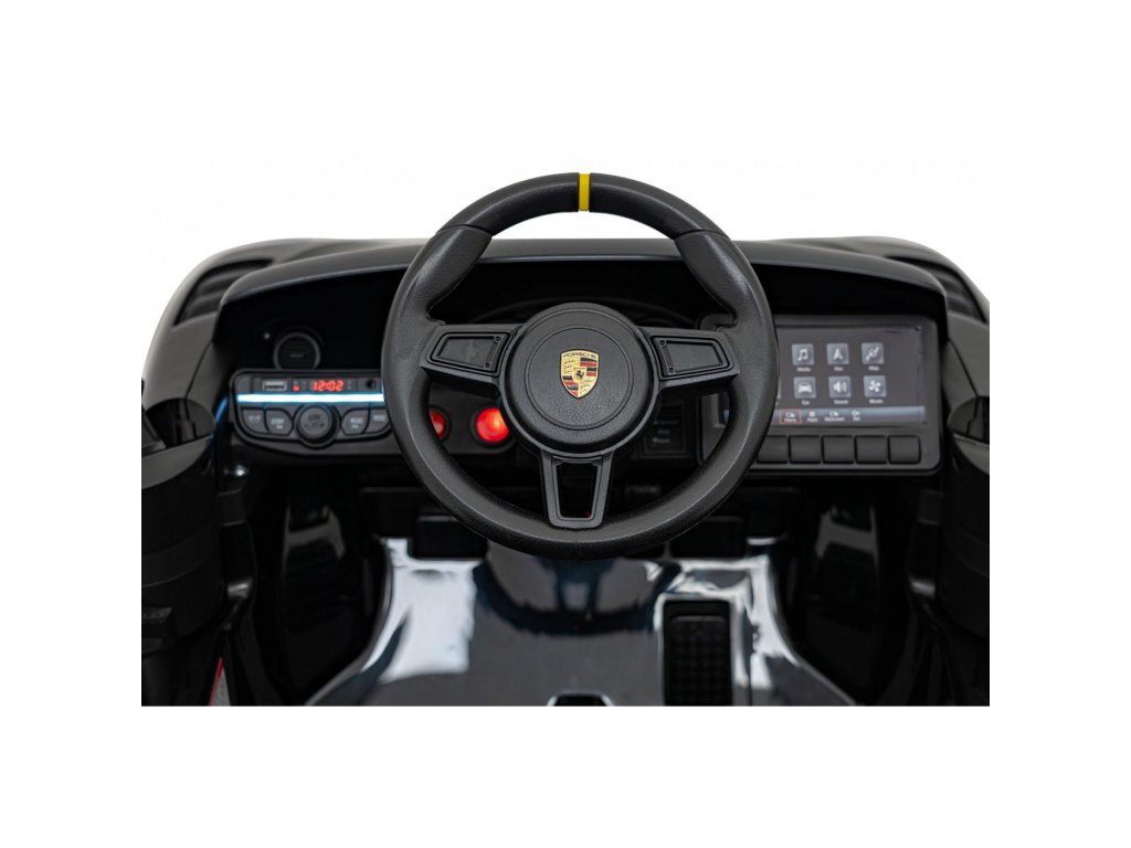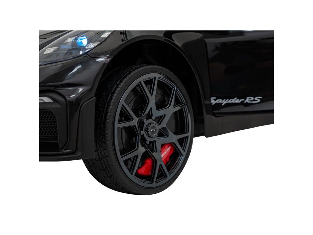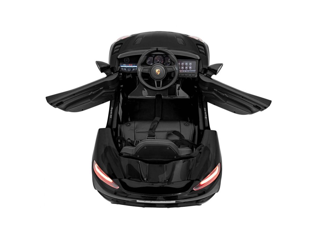 A Porsche Spyder RS 718 elektromos autó két, összesen 90 W teljesítményű motorral és egy 12 V 7 Ah kapacitású akkumulátorral rendelkezik. Az EVA habszivacs kerekek és az öko-bőrrel borított ülés kényelmes utazást biztosít. A zenei panel MP3, USB, AUX, Bluetooth és rádió . Teherbírás A játékautó súlya 30 kg . A játékautó elöl és hátul LED világítással , valamint nyitható ajtókkal rendelkezik.