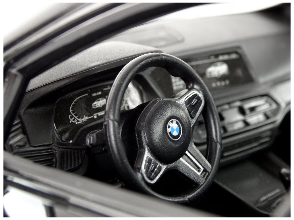 Ez a BMW játékautó modell elegáns fekete fényezéssel rendelkezik, amely egyedi és exkluzív megjelenést kölcsönöz neki. A színezett ablakok rejtélyt adnak, és láthatatlanná teszik a belső teret, a lámpák pedig növelik az eredetiség benyomását, és lehetővé teszik az éjszakai vezetést.