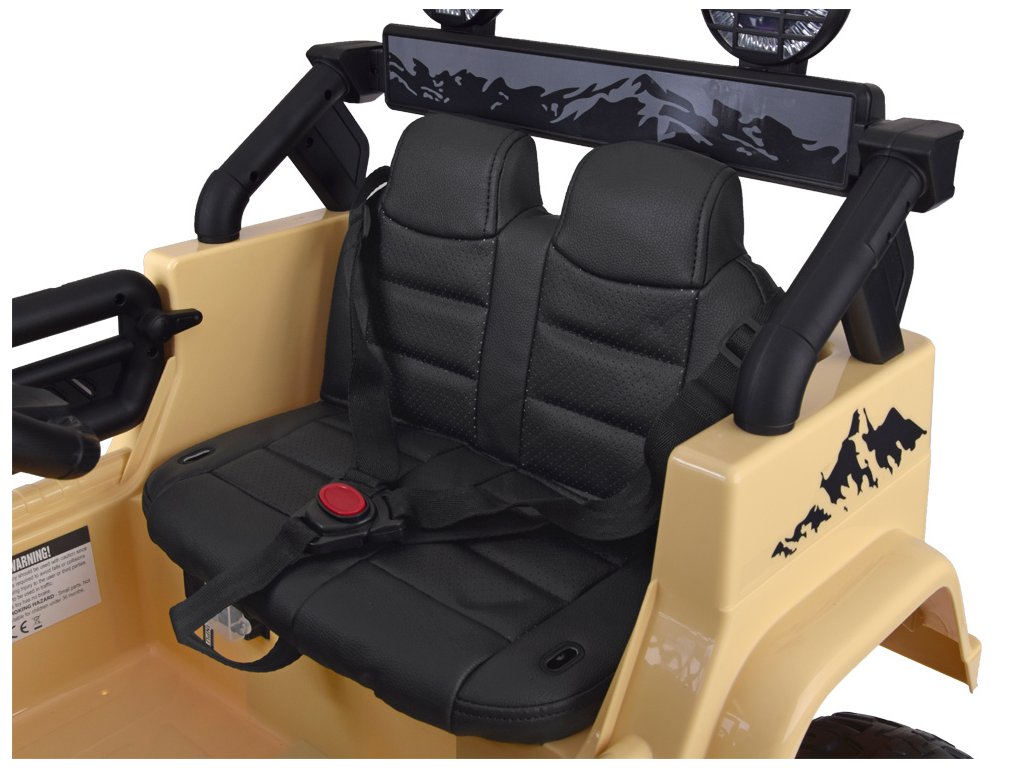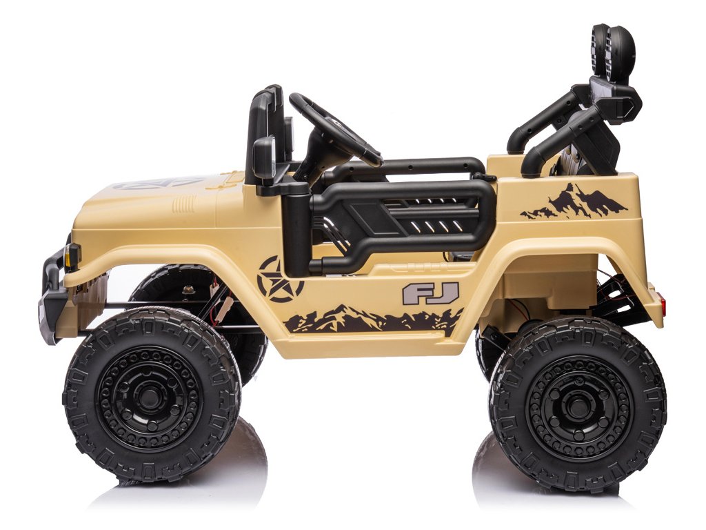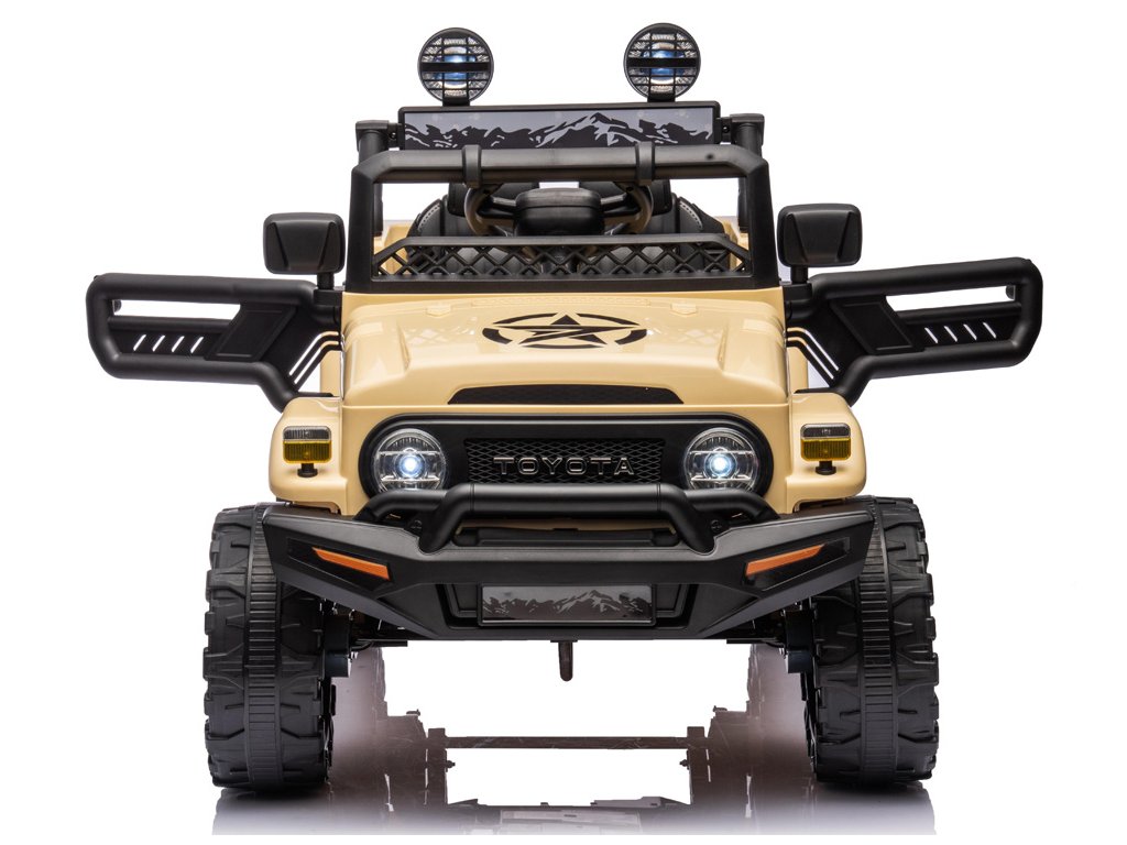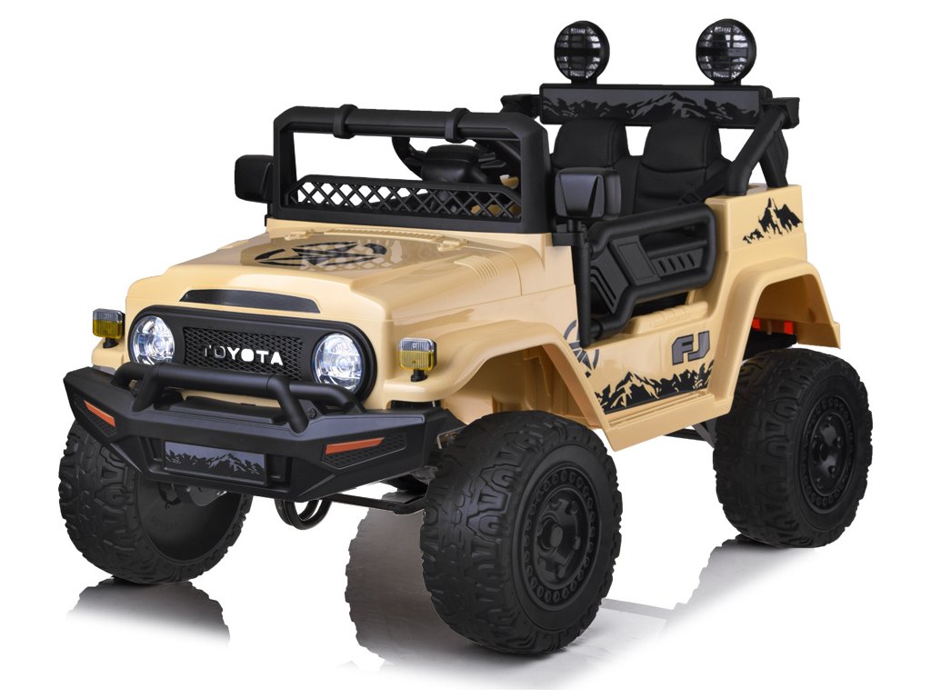 A Toyota FJ Cruiser elektromos autó két erős 12V 35W 12000RPM motorral (hátsó tengelyen) és két 12V 35W 6000RPM segédmotorral az első tengelyen található. A zenepanel bekapcsolása után hallani fogja a motor indításának hangját. Az FJ Cruiser zenei panellel van felszerelve, amely angol nyelvű dalokat és történeteket tartalmaz. Ezenkívül a panel rendelkezik USB és MP3 bemenetekkel, amelyeknek köszönhetően a fiatal vezető vezetés közben hallgathatja kedvenc dalait.