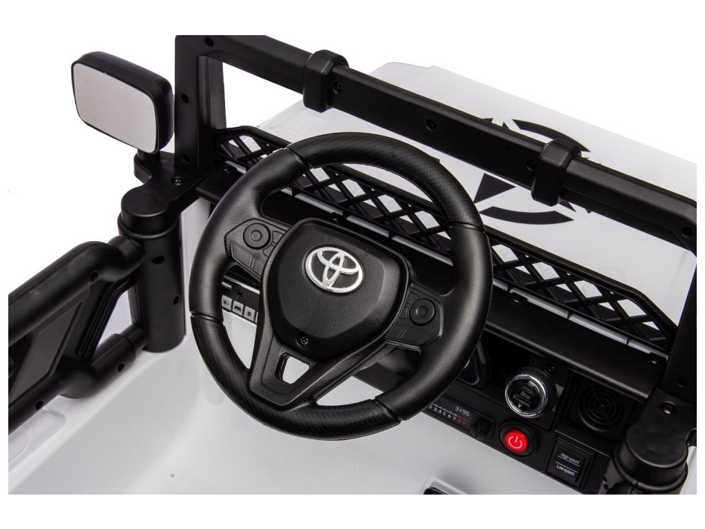 A Toyota FJ elektromos játékautó gyerekeknek puha EVA hab kerekekkel készül, amelyek csendesek és alkalmazkodnak a különböző tereptípusokhoz. A gyermek kényelmesen kialakított, ökológiai bőrből készült ülésben ül, a biztonságról pedig biztonsági övek gondoskodnak.