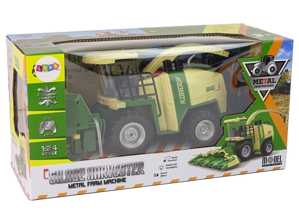 A betakarítógép biztosan tetszeni fog ezeknek a járműveknek minden rajongójának. A traktor műanyag alkatrészekből készült, emellett gumiabroncsok is vannak, így jobban tapad az útfelületen. A készlet tartalmaz egy 2,4 GHz-es távirányítót is, amely lehetővé teszi a jármű előre-, hátra- és oldalirányú vezetését.
