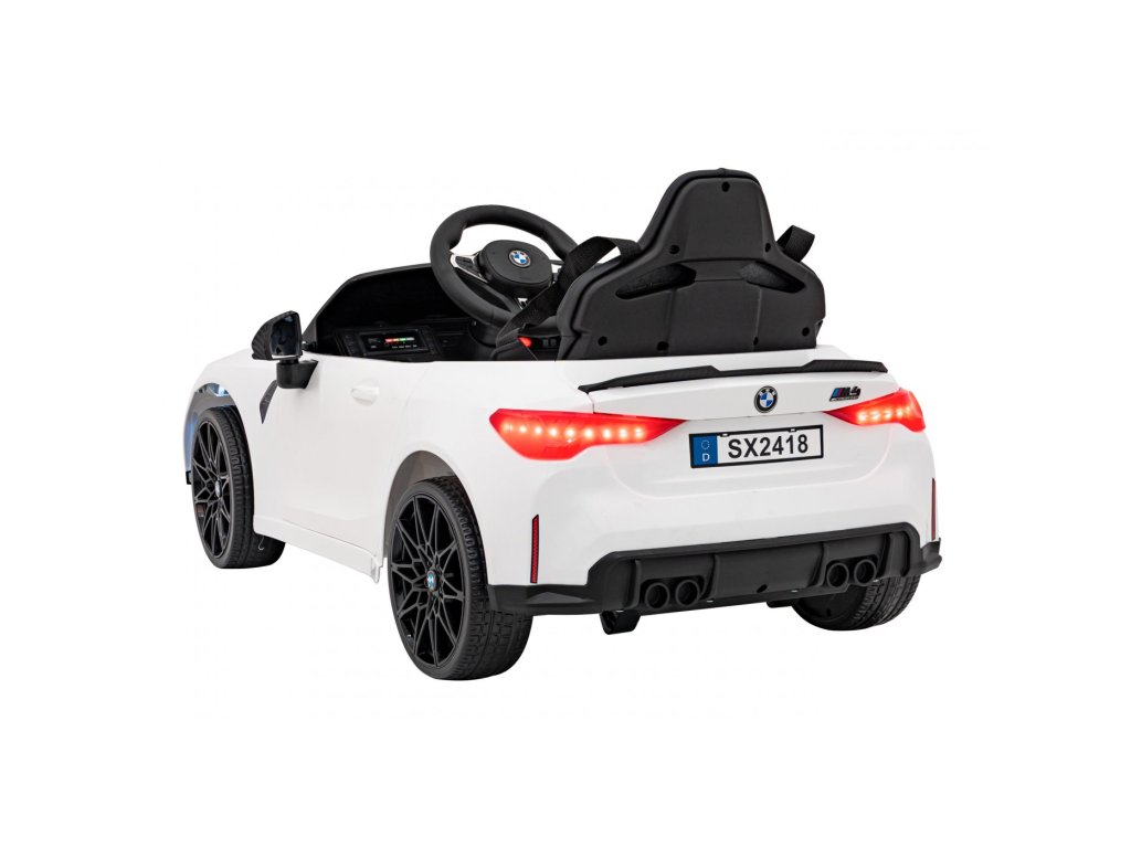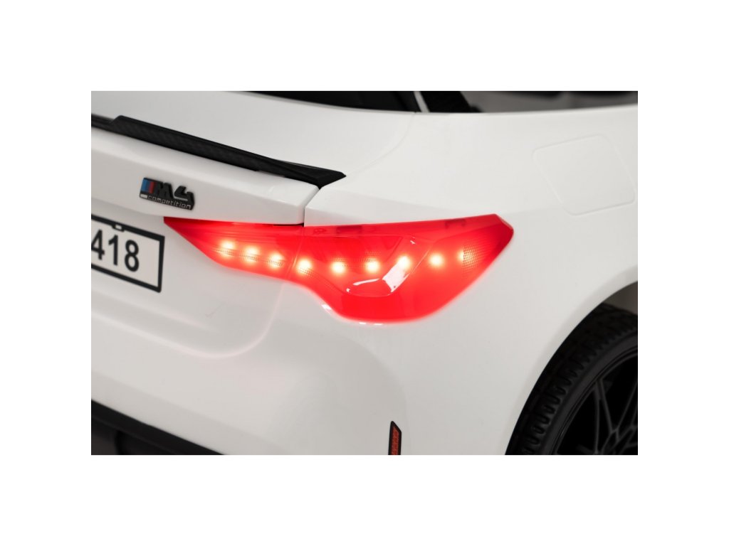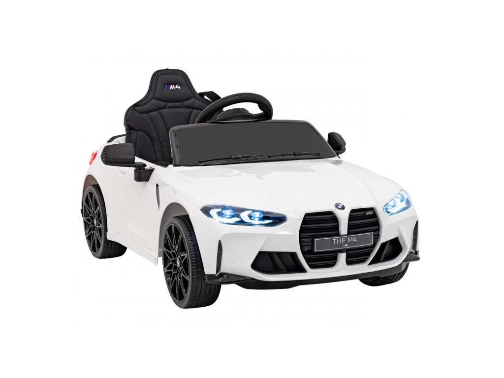 Az elektromos BMW M4 autóban két 70W összteljesítményű motor és egy 12V 7Ah kapacitású akkumulátor található. Az EVA hab kerekek és az ökológiai bőrrel borított ülés gondoskodik a kényelmes utazásról. A zenei panel minden bizonnyal élvezetesebbé teszi az utazást a gyermek számára MP3, USB, AUX és Bluetooth . Teherbírás a játékautó 30 kg . A játékautó első és hátsó LED világítással és nyitható ajtókkal rendelkezik.