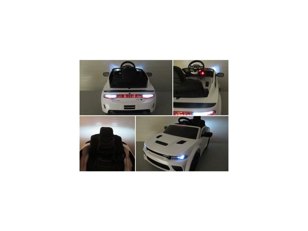 Dodge SRT gyerekautó gazdag felszereltséggel és innovatív dizájnnal. EVA hab kerekekkel van felszerelve, amelyek csendesek és nem zavarják a vezetést.