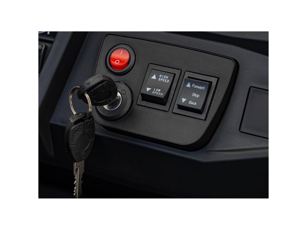 Az elektromos autó sima indulással és leállással rendelkezik. A gyermek teljesen önállóan vezetheti a járművet, de a szülők a távirányító segítségével beavatkozhatnak a vezetésbe. A távirányító biztonsági Stop gombbal van felszerelve, amely azonnal leállítja a járművet és kikapcsolja annak összes funkcióját.
