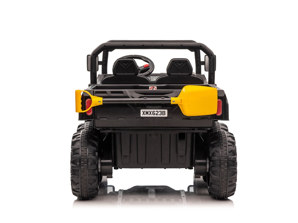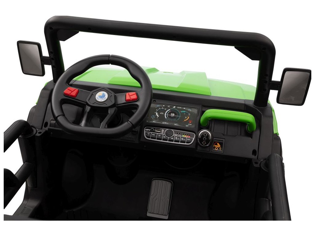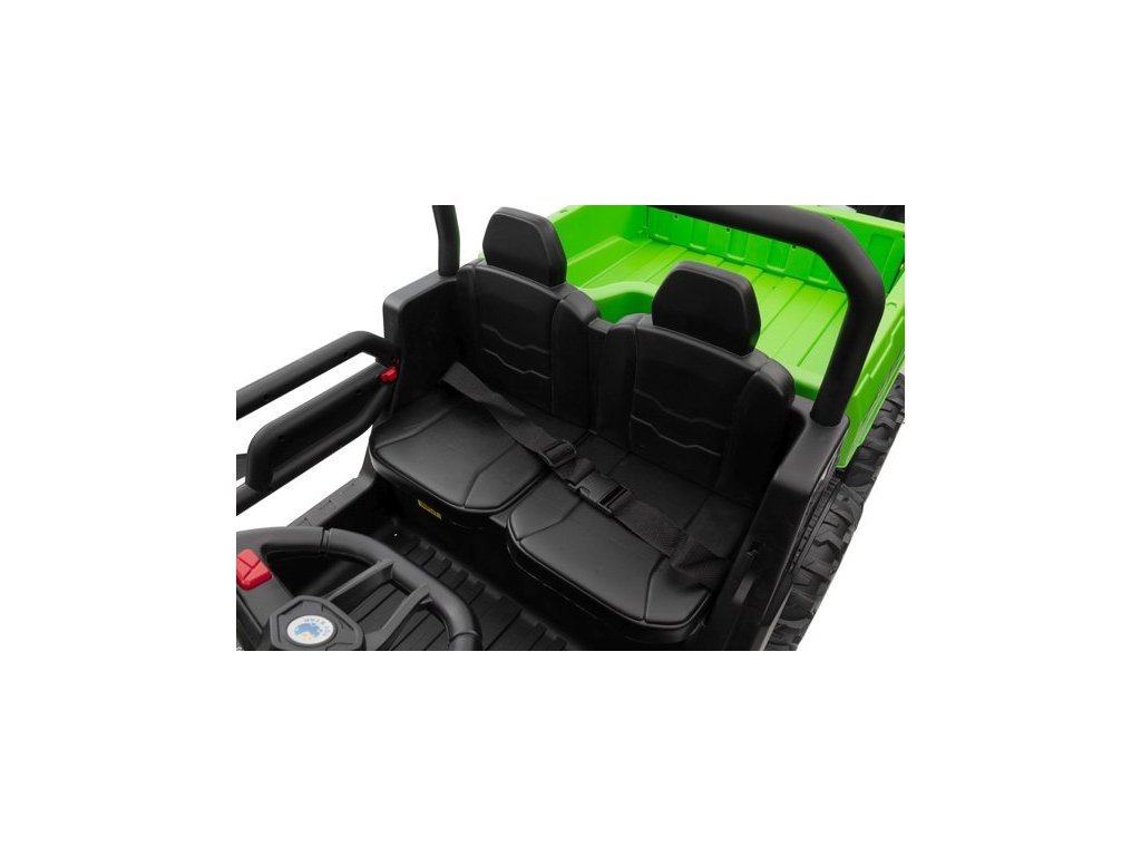Az elektromos Farmer Truck 4 motorral rendelkezik, amelyek teljesítménye 200 W és egy akkumulátora 24 V 7 Ah kapacitással. Az EVA hab kerekek és a műanyag ülés gondoskodik a kényelmes utazásról. Az MP3-as, USB-s és Bluetooth- os zenepanel minden bizonnyal élvezetesebbé teszi az utazást a gyermek számára . A játékautó teherbírása 50 kg . A játékautó első LED világítással, nyitható ajtókkal és hátsó lengéscsillapítókkal rendelkezik.