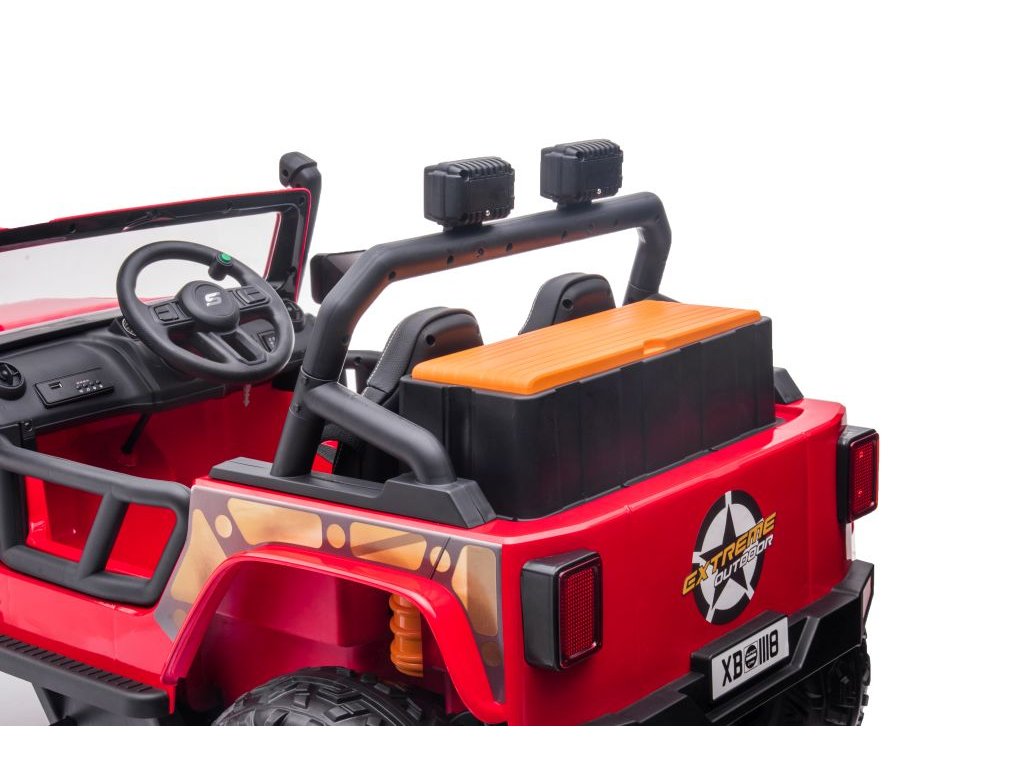Az elektromos dzsip 4Speed négy darab 45 W-os motorral és egy 12 V-os 10 Ah-s akkumulátorral rendelkezik. Az autó előre felvett dallamokkal ellátott zenei panellel, USB és Bluetooth bemenetekkel rendelkezik. A kormánykeréken kürt található. Az autó első LED-es lámpákkal van felszerelve. Az autó kulccsal indítható, és a motor jellegzetes hangjait hallani fogja.