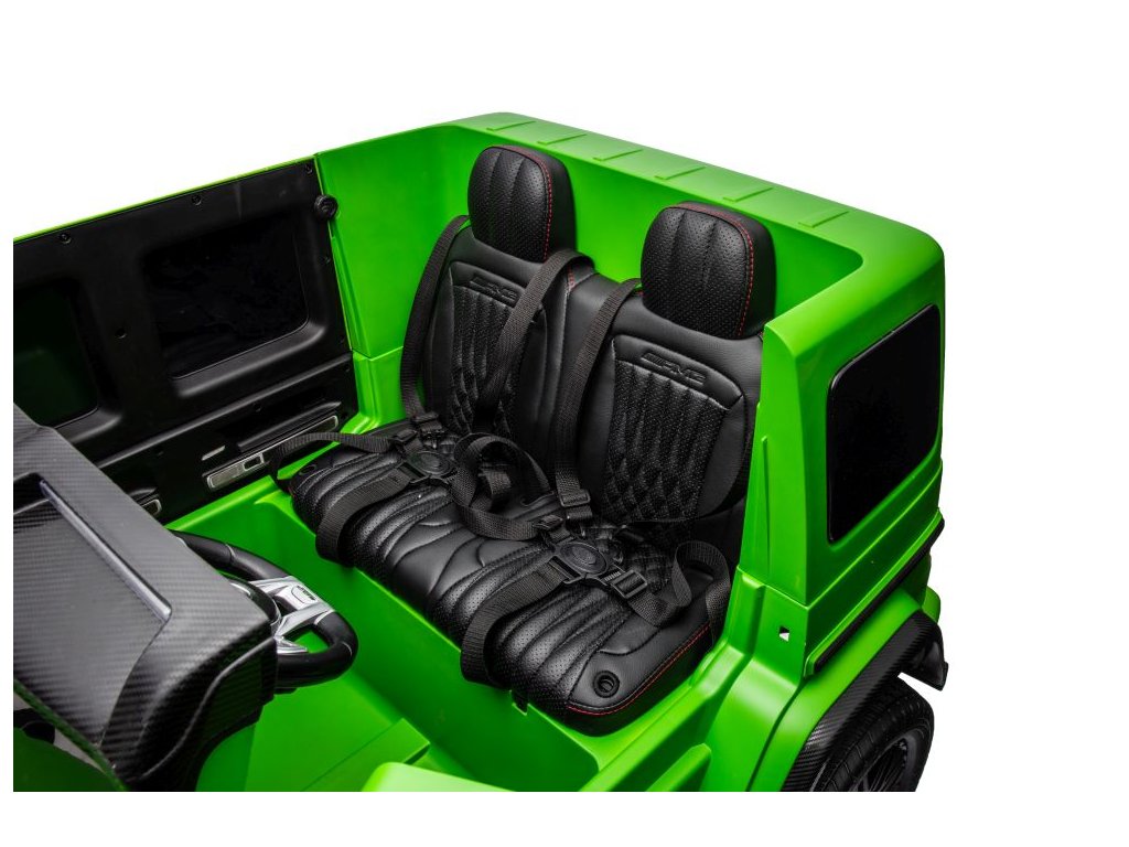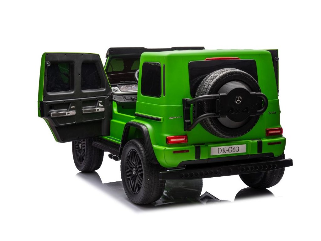 A Mercedes G63 XXL elektromos játékautó nem hiányozhat egyetlen gyerekgarázsból sem. A játékautó 2x24V 7Ah akkumulátorral működik. A felszereltség része az ökobőrrel borított ülés, az EVA hab kerekek , valamint az első és hátsó LED-es világítás . A kocsi maximális terhelhetősége 80 kg . Utazás közben a gyermeket minden bizonnyal lenyűgözi a zenepanel USB-vel, MP3-mal, MP4- vel és Bluetooth- al .