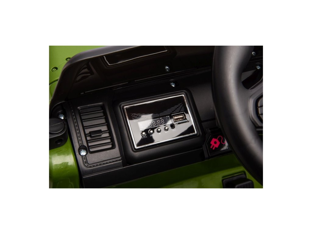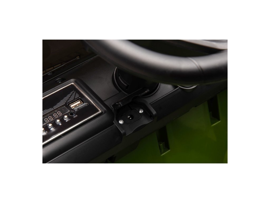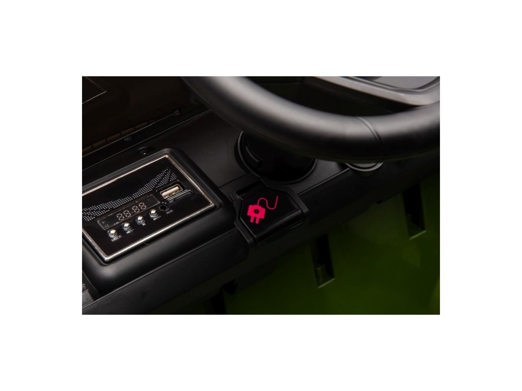 A játékautó MP3-mal, USB-vel, SD-kártyával és AUX bemenettel ellátott zenepanellel van felszerelve, amely lehetővé teszi kedvenc zenéinek lejátszását. Hangeffektusokat, kürtöt és előre felvett dallamokat is tartalmaz.