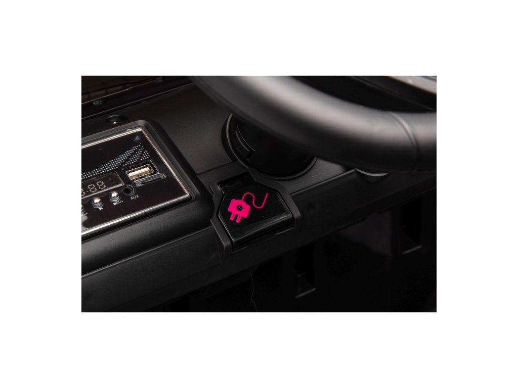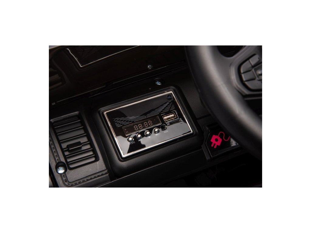A játékautó MP3-mal, USB-vel, SD-kártyával és AUX bemenettel ellátott zenepanellel van felszerelve, amely lehetővé teszi kedvenc zenéinek lejátszását. Hangeffektusokat, kürtöt és előre felvett dallamokat is tartalmaz.