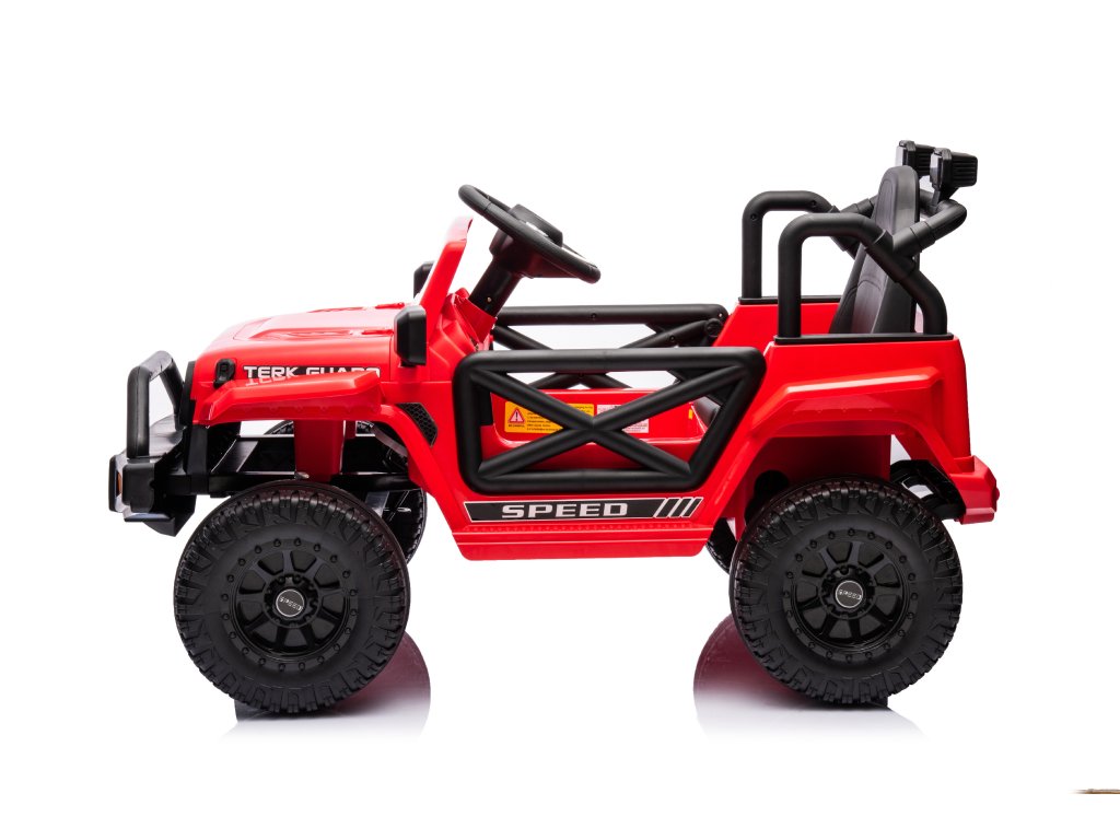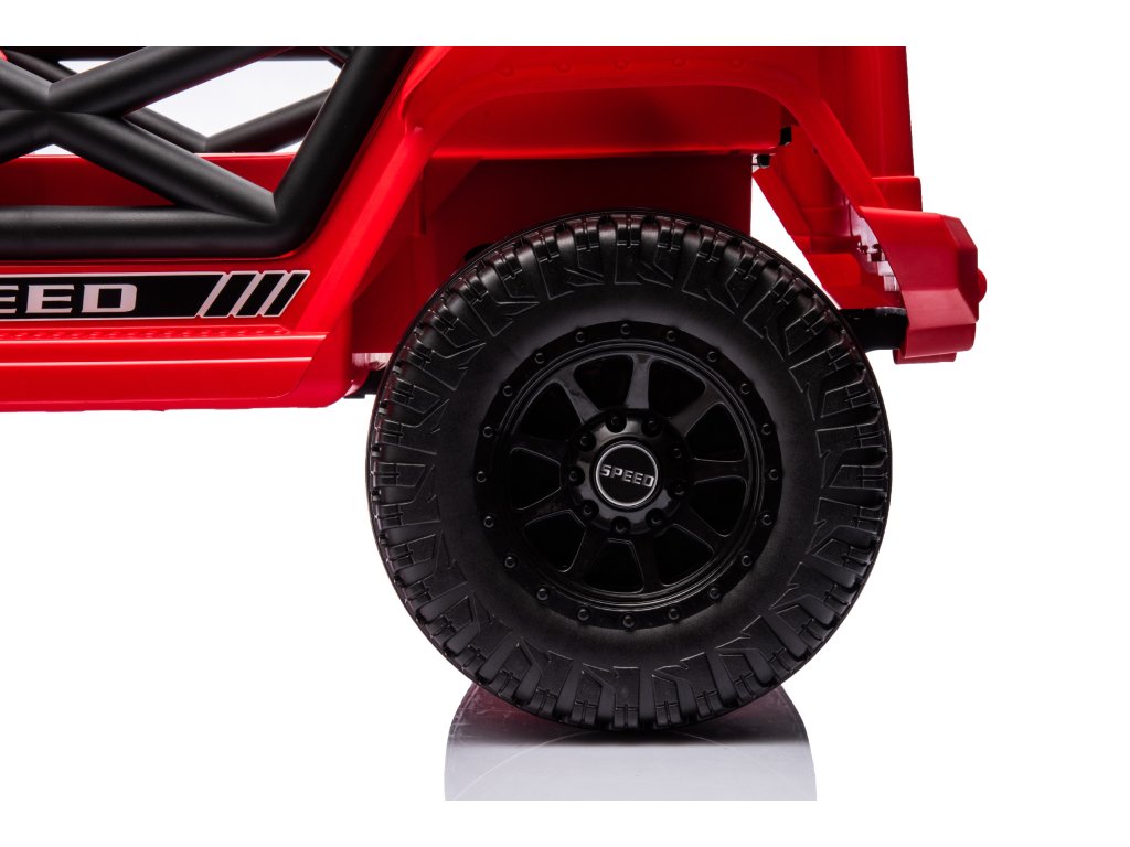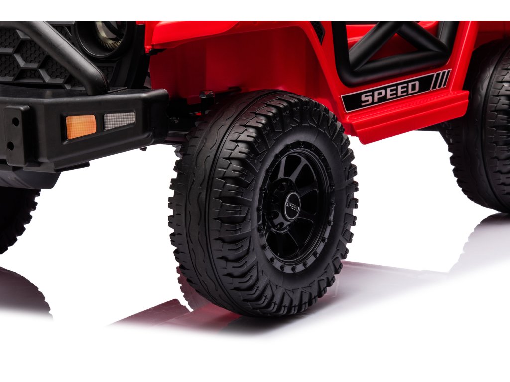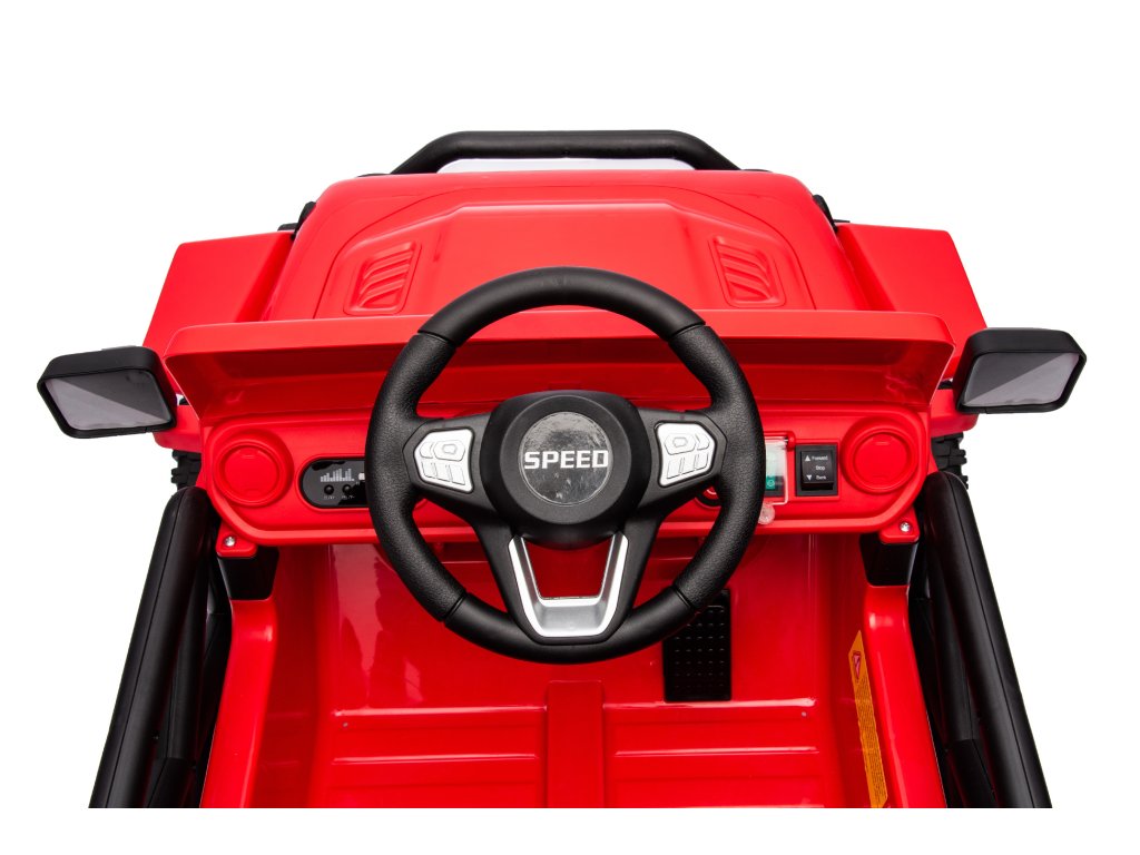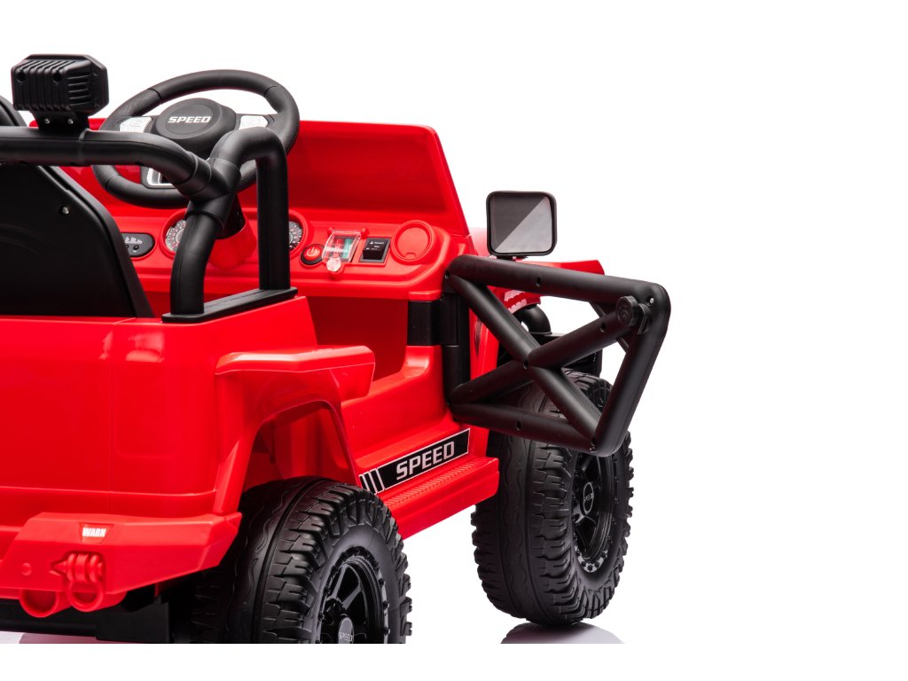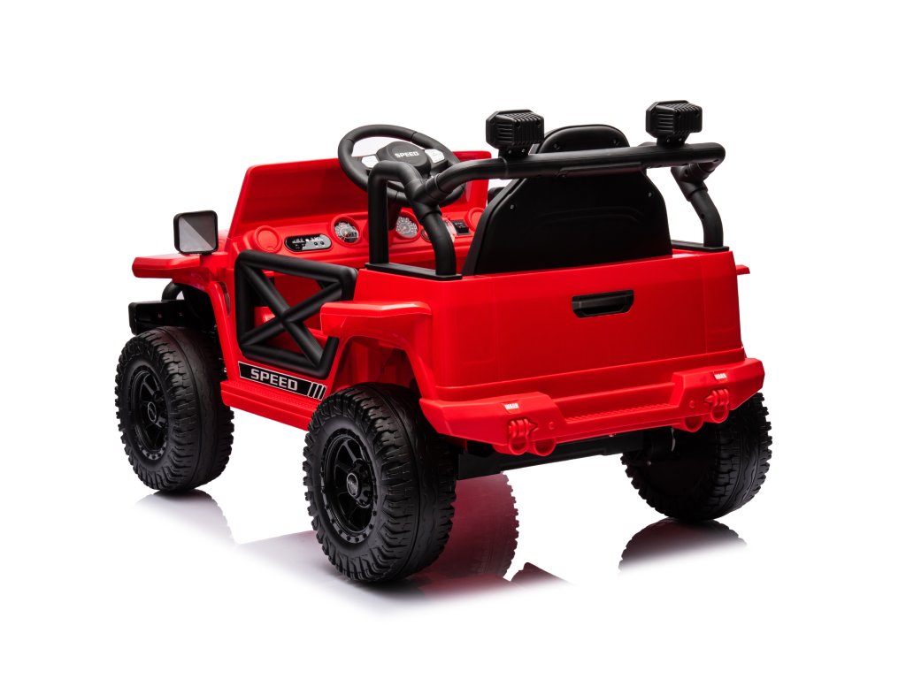 Elektromos játékautó OFFROAD piros 12V Magas alváz, széles ülés, Felfutó tengelyek, 2,4 GHz Távirányítós LED lámpák