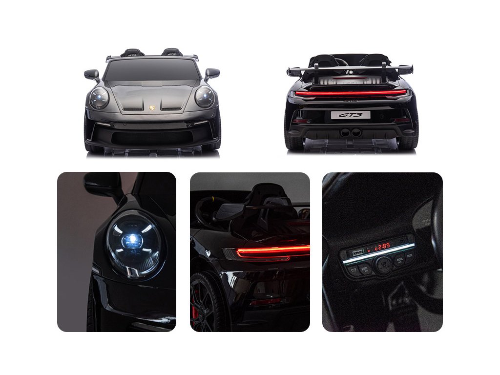 Elektromos játékautó Porsche 911 GT3 XXL + MP4 | 24V14Ah | 4x200W | 2 gyermek számára | Fekete fényezéssel