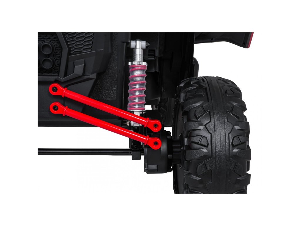 A RACING Road 2000 24V-os elektromos gyermekautó egy robusztus és sokoldalú modell két kis sofőr számára, akik igazi kalandra vágynak. Négy erős motorjának (4 × 120 W) és egy erős 24 V-os 7 Ah-s akkumulátornak köszönhetően az autó nemcsak sima felületeken, hanem enyhén egyenetlen terepen is megbirkózik. A puha EVA habszivacs kerekek és az állítható hátsó felfüggesztés biztosítják a sima utazást felesleges rázkódás nélkül, míg a lágyindítás funkció hozzájárul a biztonsághoz és a kényelemhez.