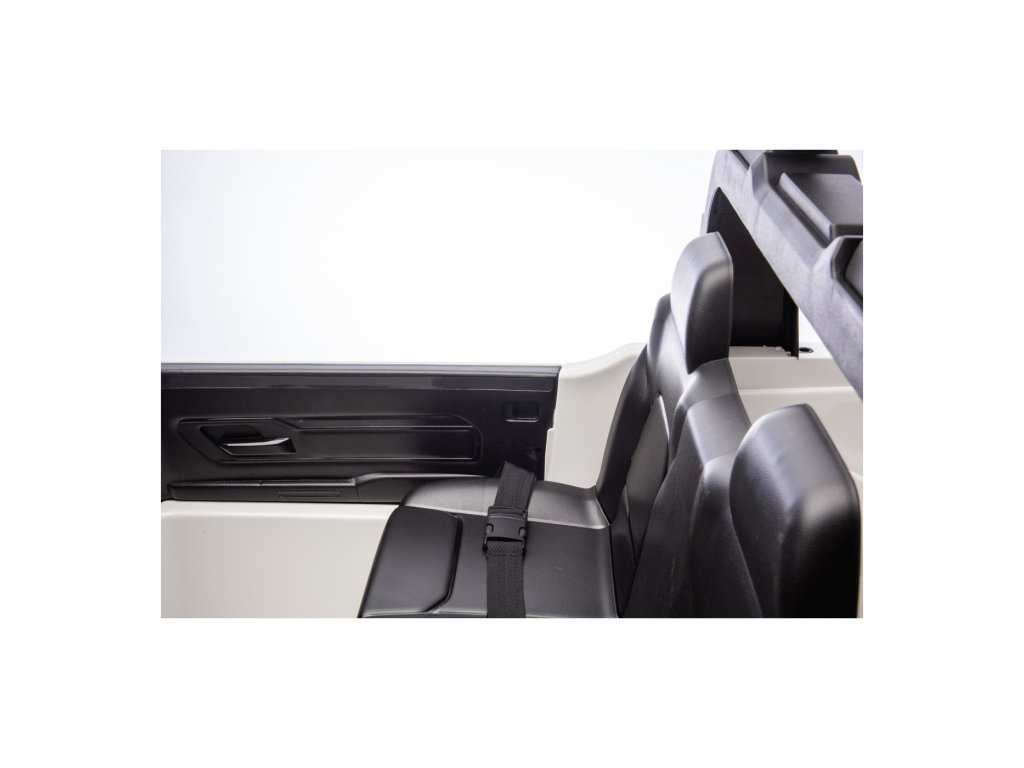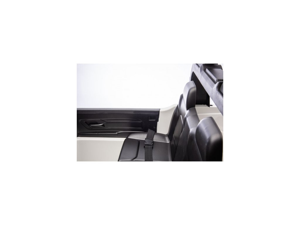 A jármű távirányítóval is vezérelhető, amely lehetővé teszi a sebességszabályozást, az irányváltást, és biztonsági Stop gombbal is rendelkezik az azonnali megállításhoz. A játékautó automatikus fékfunkcióval van felszerelve, amely akkor aktiválódik, amikor leveszed a lábad a gázpedálról. Ezenkívül a biztonsági övek is garantálják a biztonságot.