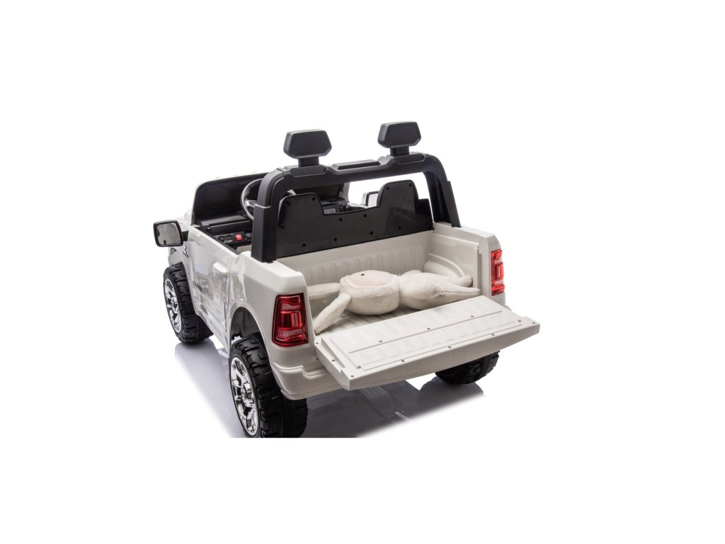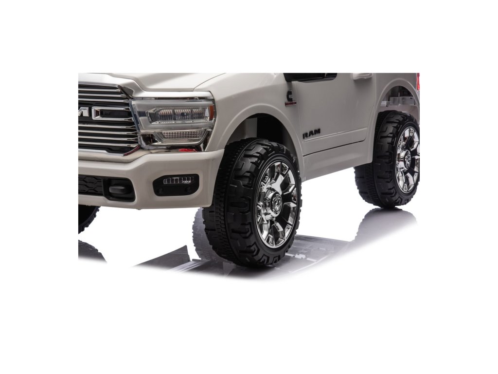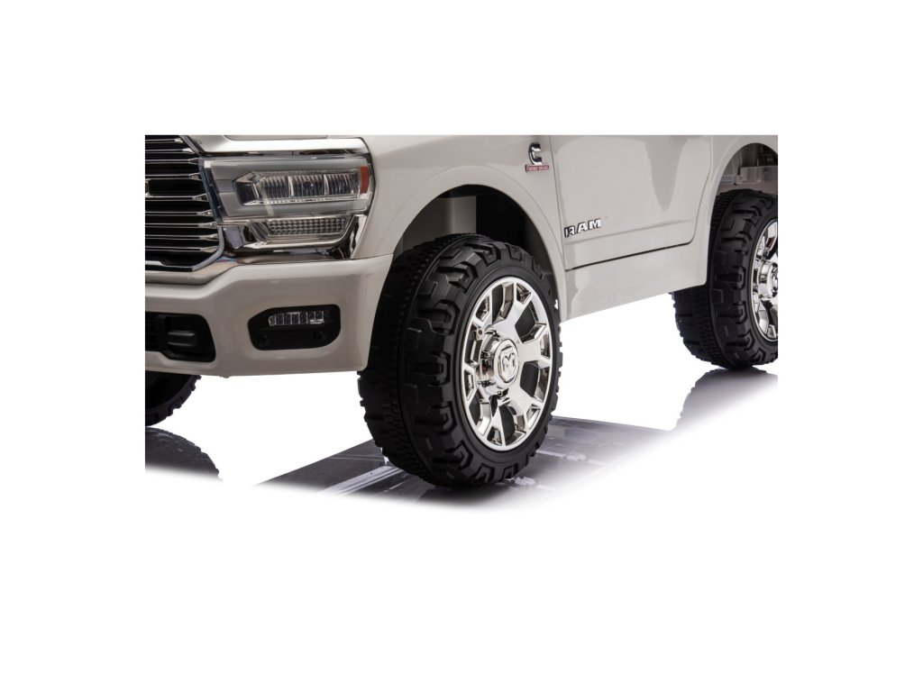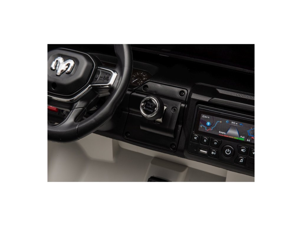 A RAM 3500 elektromos játékautó két, összesen 400 W teljesítményű motorral és egy 24V/7Ah kapacitású akkumulátorral rendelkezik. Az EVA habszivacs kerekek és az ekológikus bőrrel borított ülés kényelmes utazást biztosít. Egy MP3 és USB zenei panel minden bizonnyal élvezetesebbé teszi az utazást gyermeke számára . Teherbírás A játékautó súlya 50 kg . A játékautó első és hátsó LED világítással , valamint nyitható ajtókkal rendelkezik.