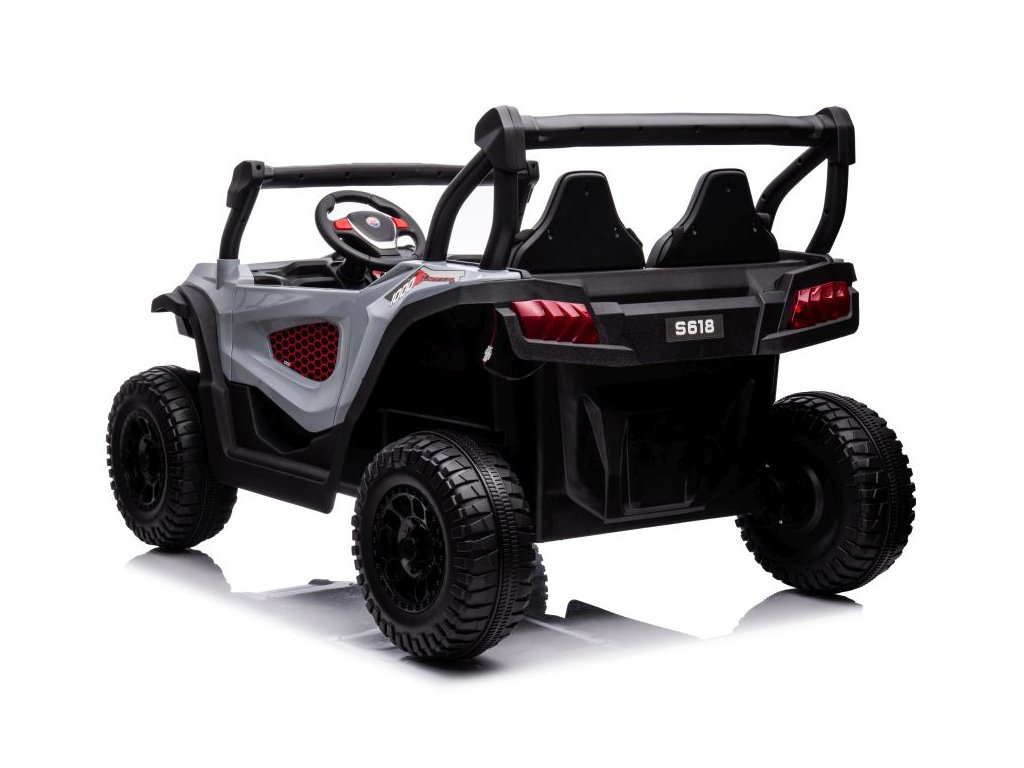 Elektromos játékautó S618 nem hiányozhat egyetlen gyermekgarázsból sem. A játékautó 24V-os 7Ah-s akkumulátorral működik. A kocsi maximális terhelhetősége 59 kg . Utazás közben a gyermeket minden bizonnyal lenyűgözi az USB bemenettel rendelkező zenepanel , Bluetooth és rádió .
