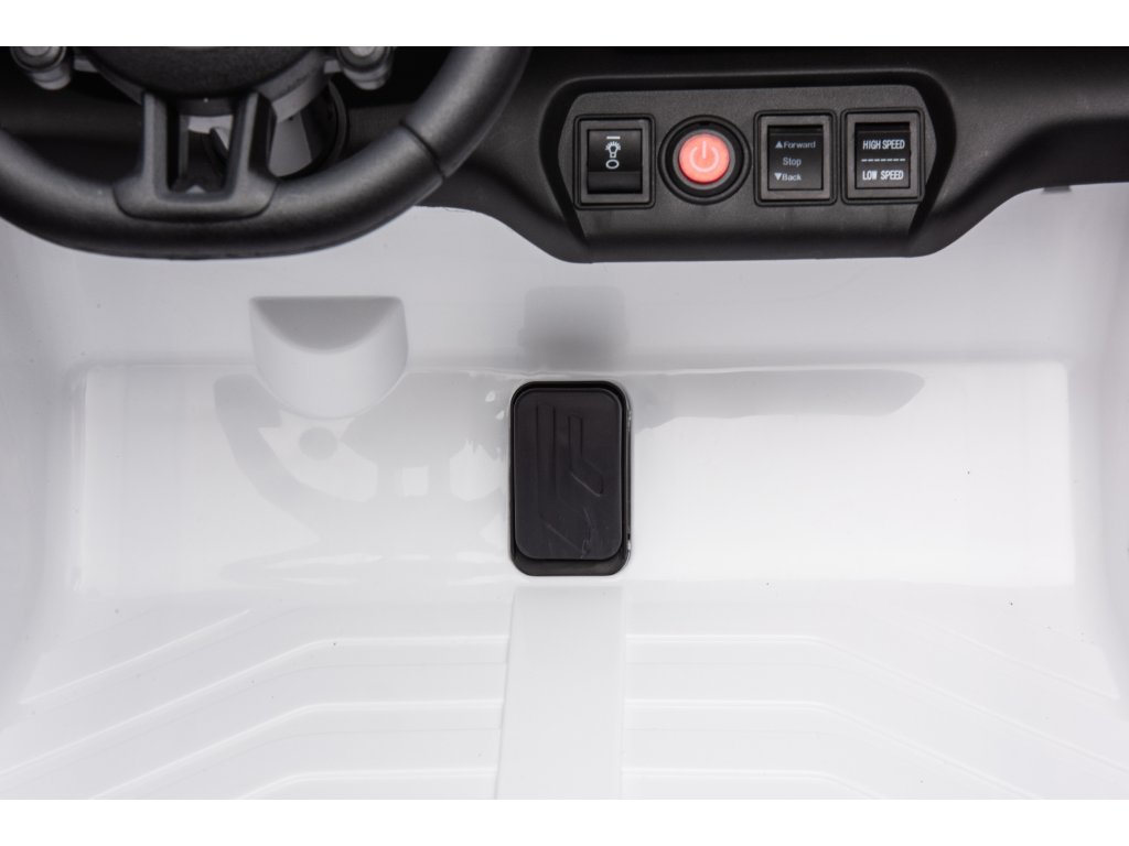A távirányítóval, amely 2,4 GHz frekvencián működik, szabályozható a jármű sebessége, megváltoztatható a haladási irány, vagy használható a "Stop" biztonsági gomb, amely azonnal megállítja a járművet és kikapcsol minden funkciót.