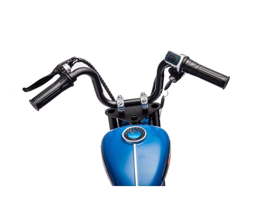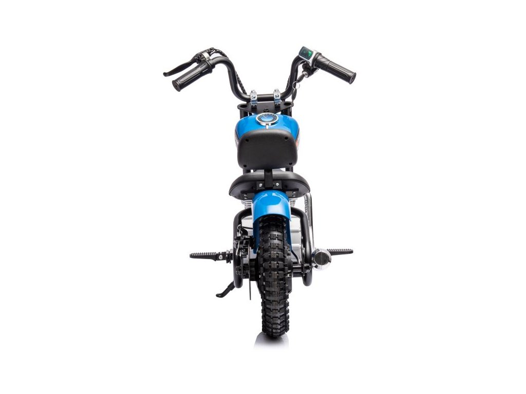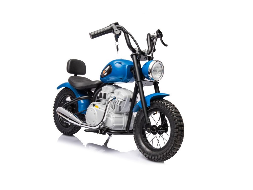 Elektromos motorkerékpár A9902 nem hiányozhat egyetlen gyermekgarázsból sem. A jármű két kapacitású akkumulátorral működik 2x18V 9Ah . A kocsi maximális terhelhetősége 80 kg . Az első LED lámpa és a kulcs nélküli indítás minden bizonnyal érdekelni fogja a gyermeket .