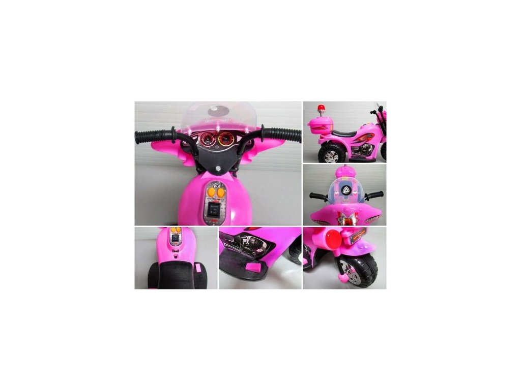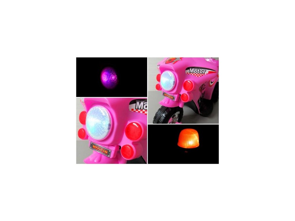 A gyerek elektromos motorkerékpár felszerelése egy elülső lámpát és egy zenepanelt tartalmaz előre felvett dallamokkal. A motorkerékpár nagyon könnyen kezelhető - csak nyomja meg a gázpedált, és a jármű lassan elindul.