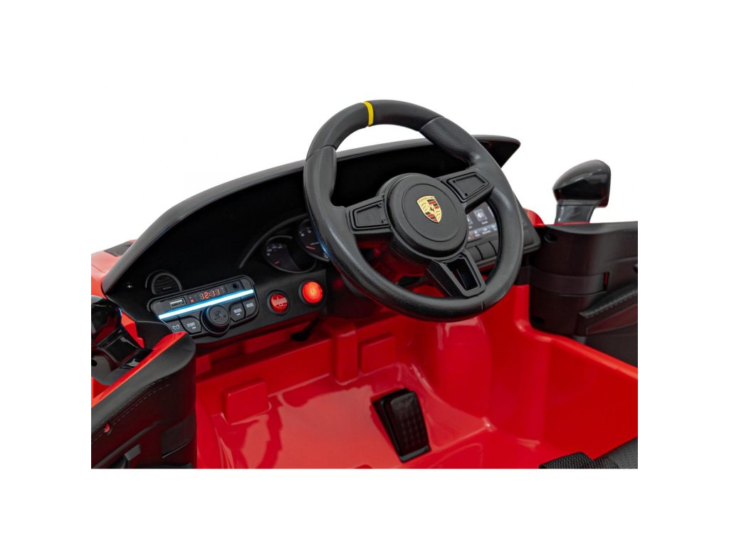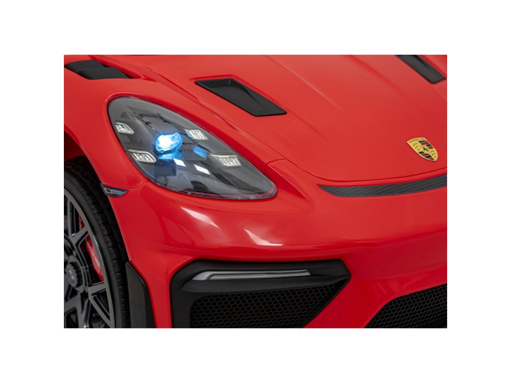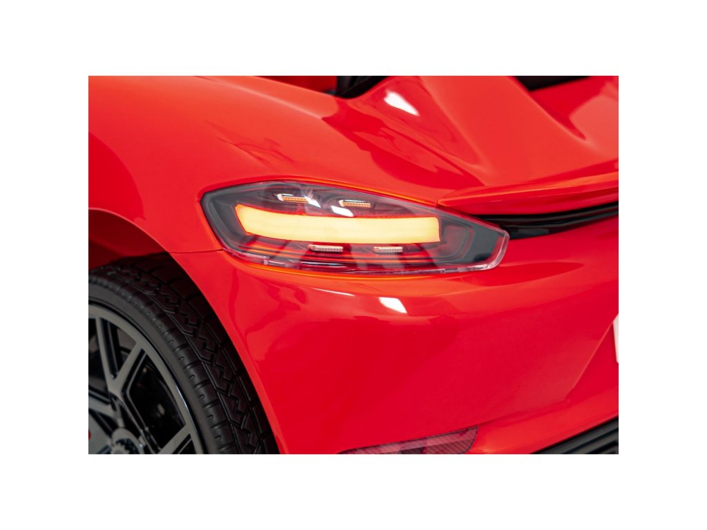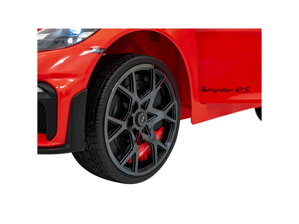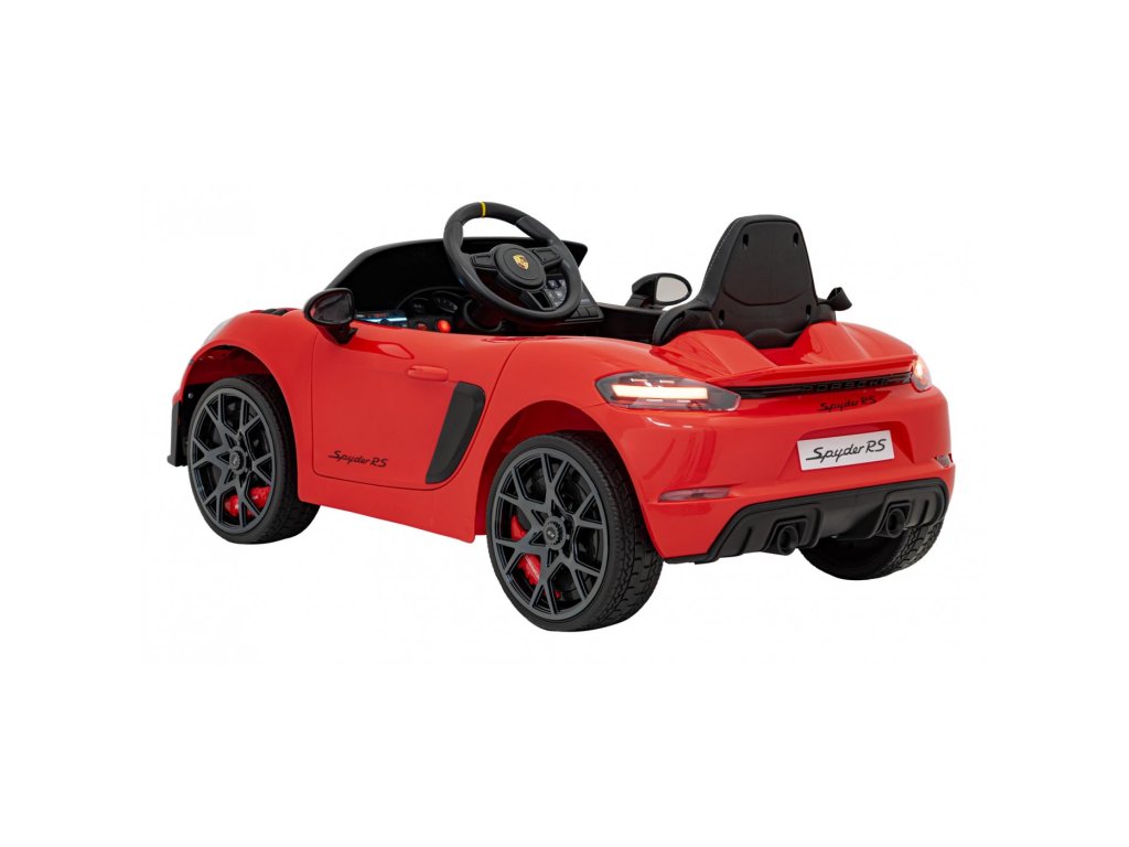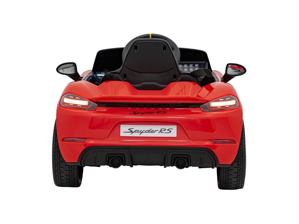 A Porsche Spyder RS 718 elektromos autó két, összesen 90 W teljesítményű motorral és egy 12 V 7 Ah kapacitású akkumulátorral rendelkezik. Az EVA habszivacs kerekek és az öko-bőrrel borított ülés kényelmes utazást biztosít. A zenei panel MP3, USB, AUX, Bluetooth és rádió . Teherbírás A játékautó súlya 30 kg . A játékautó elöl és hátul LED világítással , valamint nyitható ajtókkal rendelkezik.