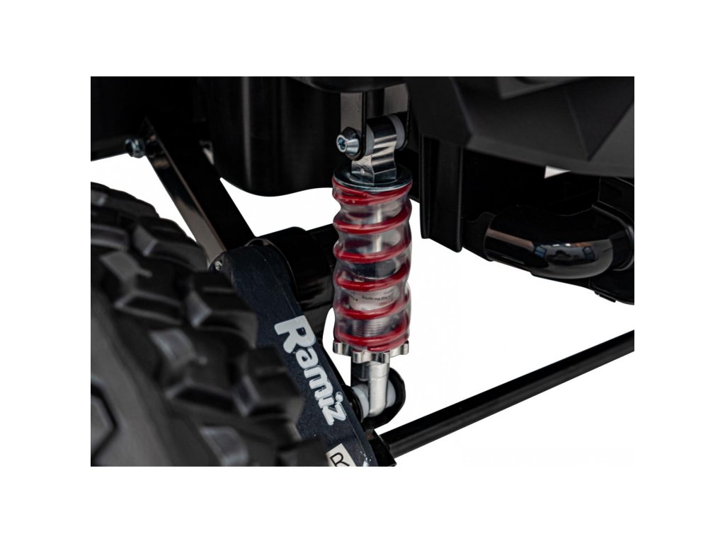 A játékautót egy 2,4 GHz-es frekvencián működő távirányítóval irányíthatja. A távirányító három sebességes és egy STOP biztonsági gombbal rendelkezik, amely megnyomására azonnal leállítja a játékautót. Az ülés ökológiai bőrrel borított és biztonsági övvel rendelkezik.