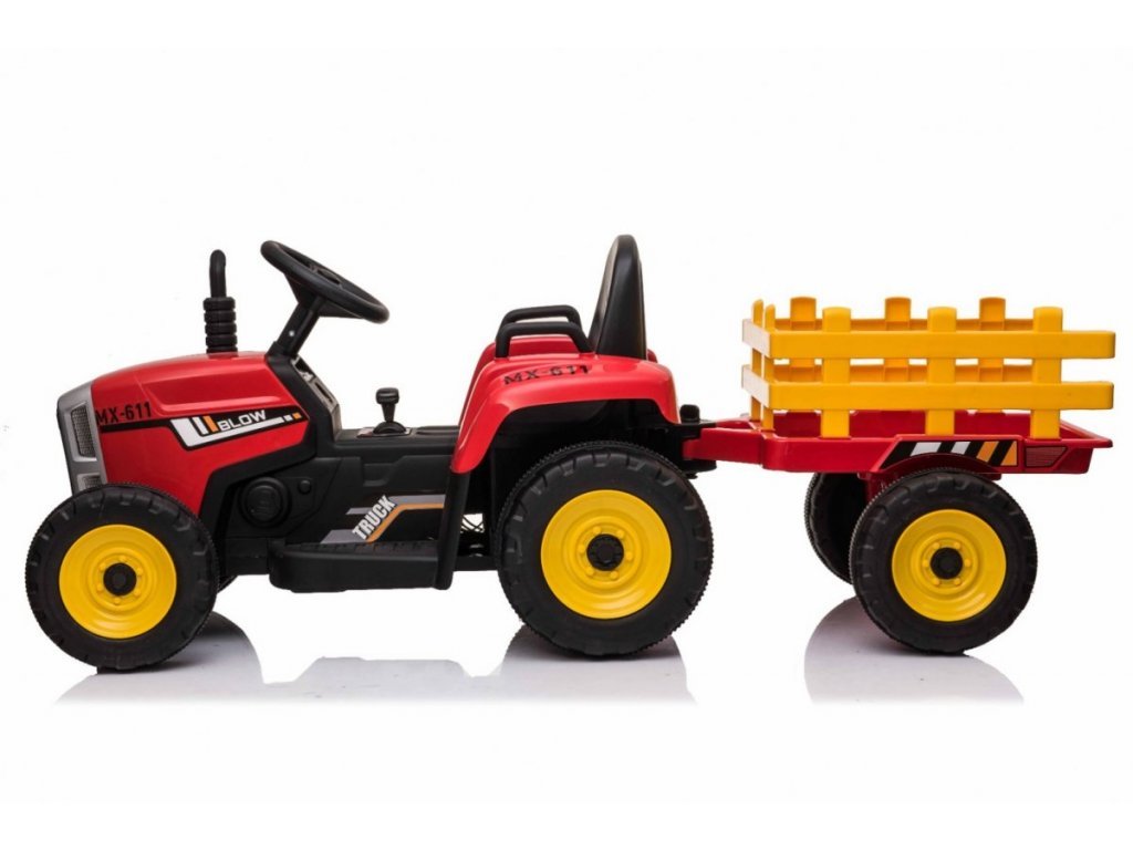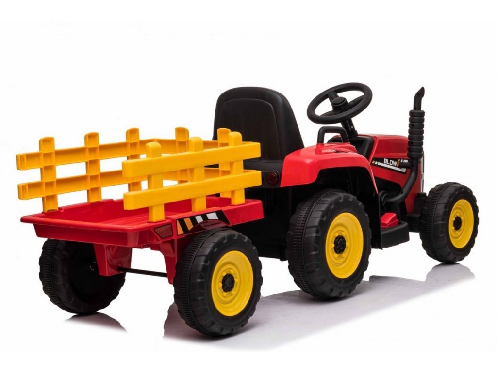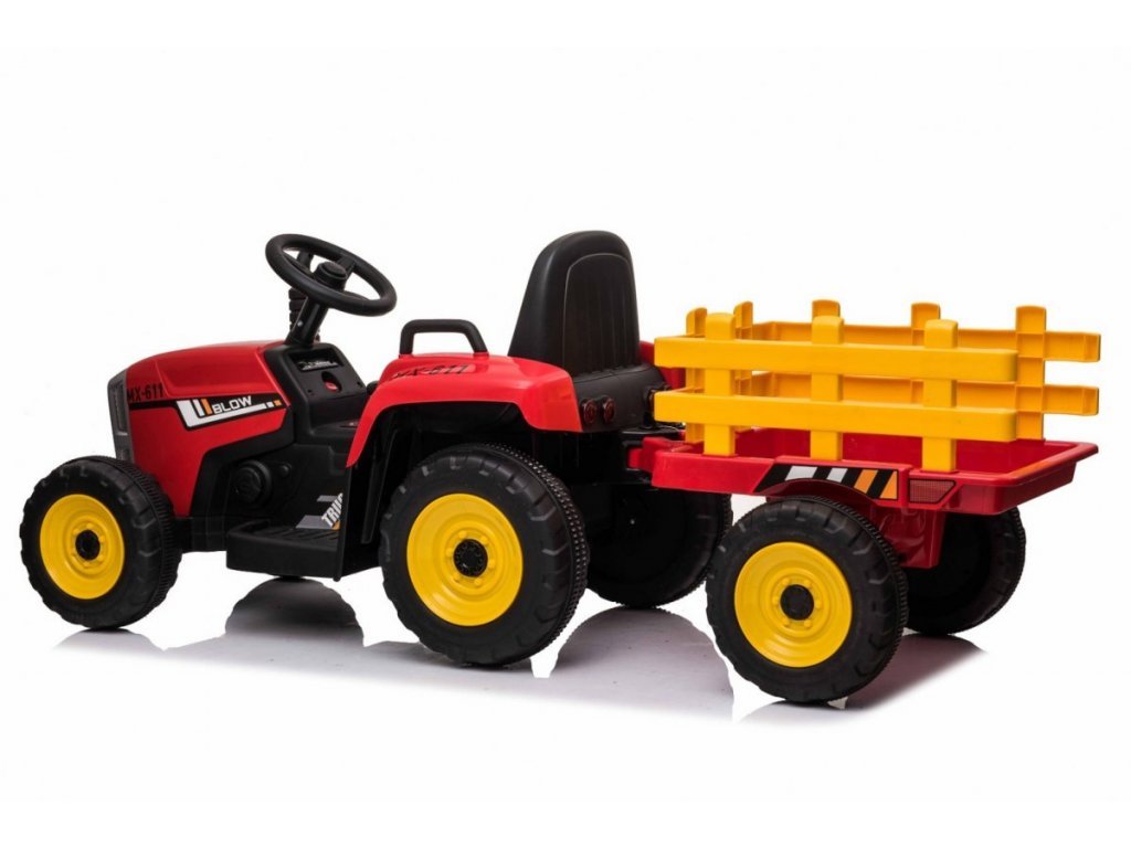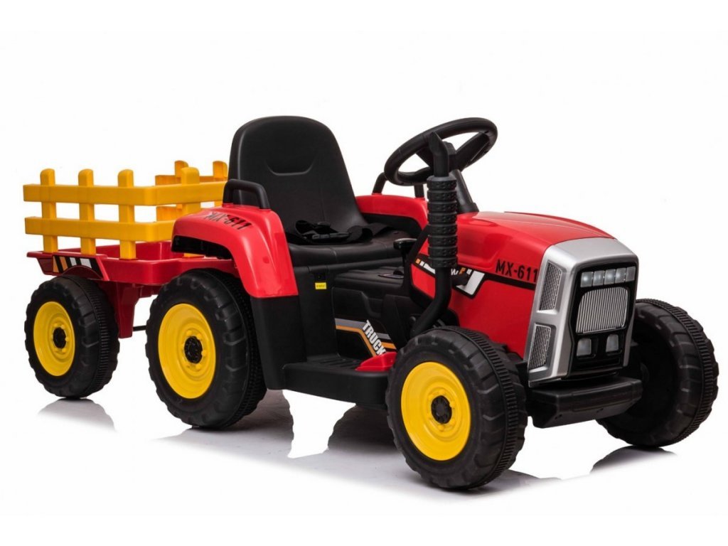 Az elektromos traktor kialakítása négy keréken alapul. Könnyű defektmentes műanyag kerekek. A gyerektraktort 12V-os 7Ah-s akkumulátor hajtja, melyhez 2x45W-os motorok társulnak. A traktort fiúknak és lányoknak egyaránt szánják – az egyetlen korlátozás a 30 kg-ig terjedő terhelés.