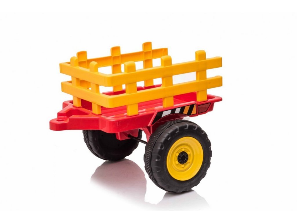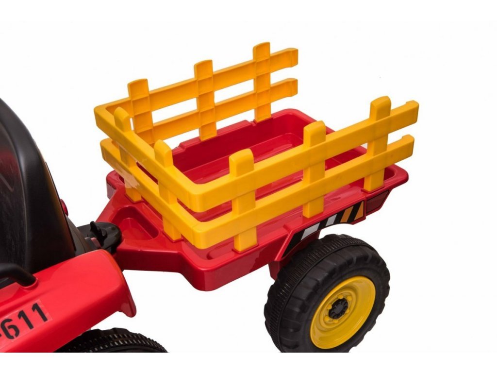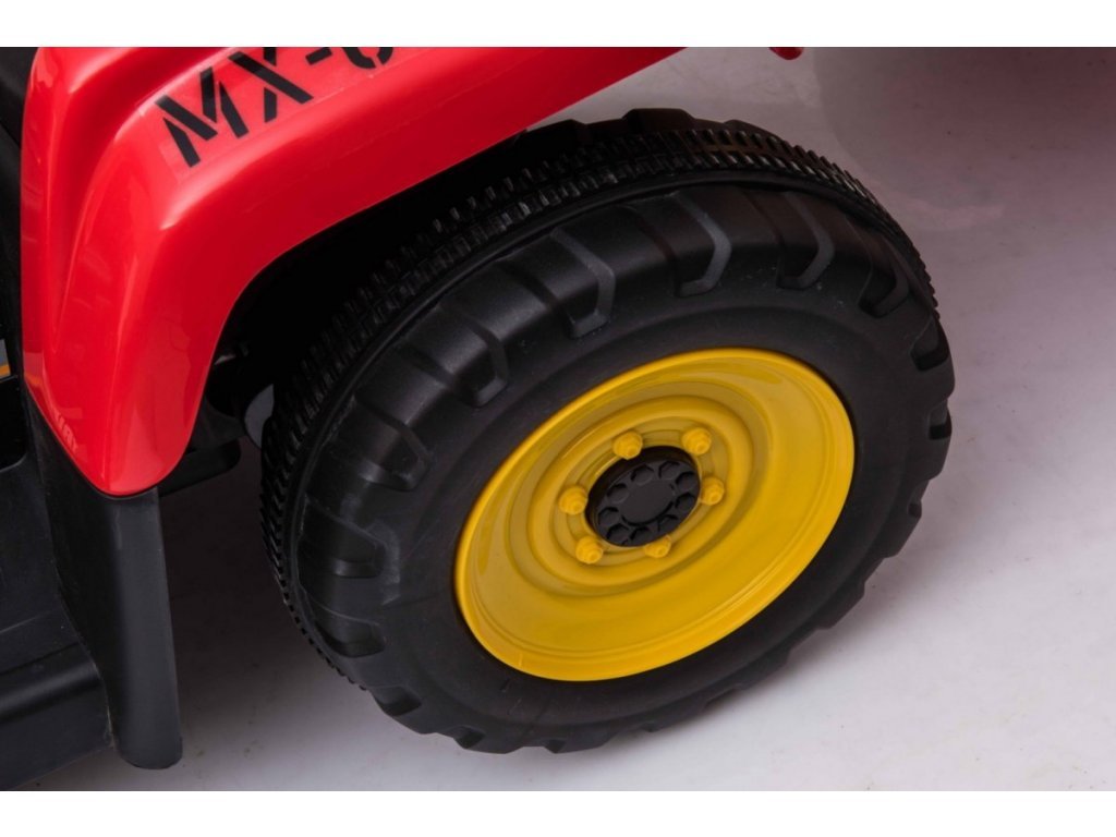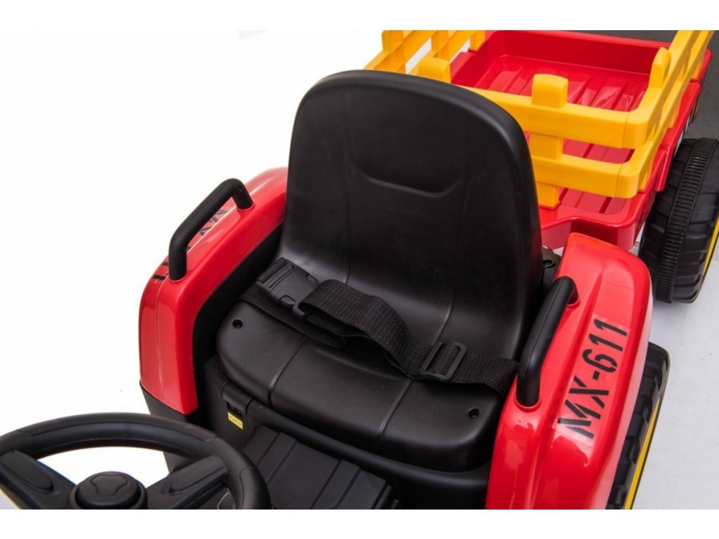 Az elektromos traktor kialakítása négy keréken alapul. Könnyű defektmentes műanyag kerekek. A gyerektraktort 12V-os 7Ah-s akkumulátor hajtja, melyhez 2x45W-os motorok társulnak. A traktort fiúknak és lányoknak egyaránt szánják – az egyetlen korlátozás a 30 kg-ig terjedő terhelés.