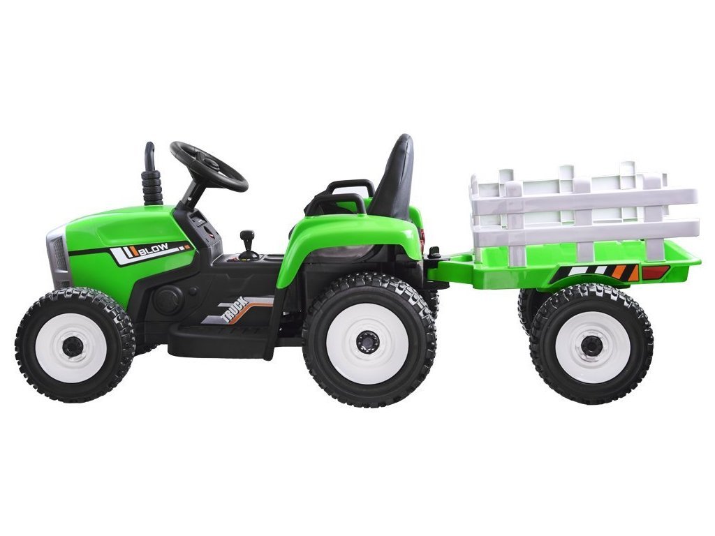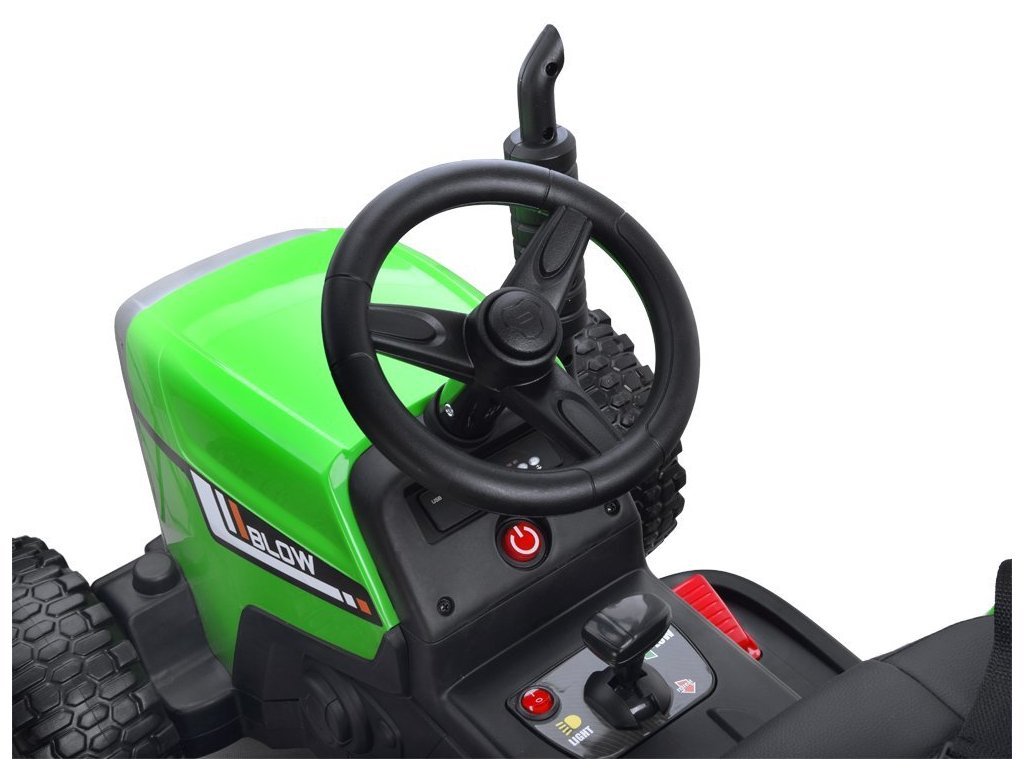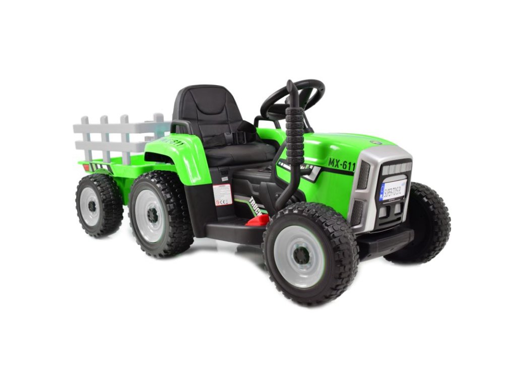 Az elektromos traktor kialakítása négy keréken alapul. Az EVA anyag nagy előnye, amelyből a gumiabroncsok készülnek, a nagy tartóssága és defektállósága, melynek köszönhetően a gyermek különféle típusú felületeken vezetheti járművét. A gyerektraktort 12V7Ah-s akkumulátor hajtja, melyhez 2x45W-os motorok társulnak. A traktor 3 évnél idősebb fiúk és lányok számára készült - az egyetlen korlátozás a 30 kg feletti terhelés.