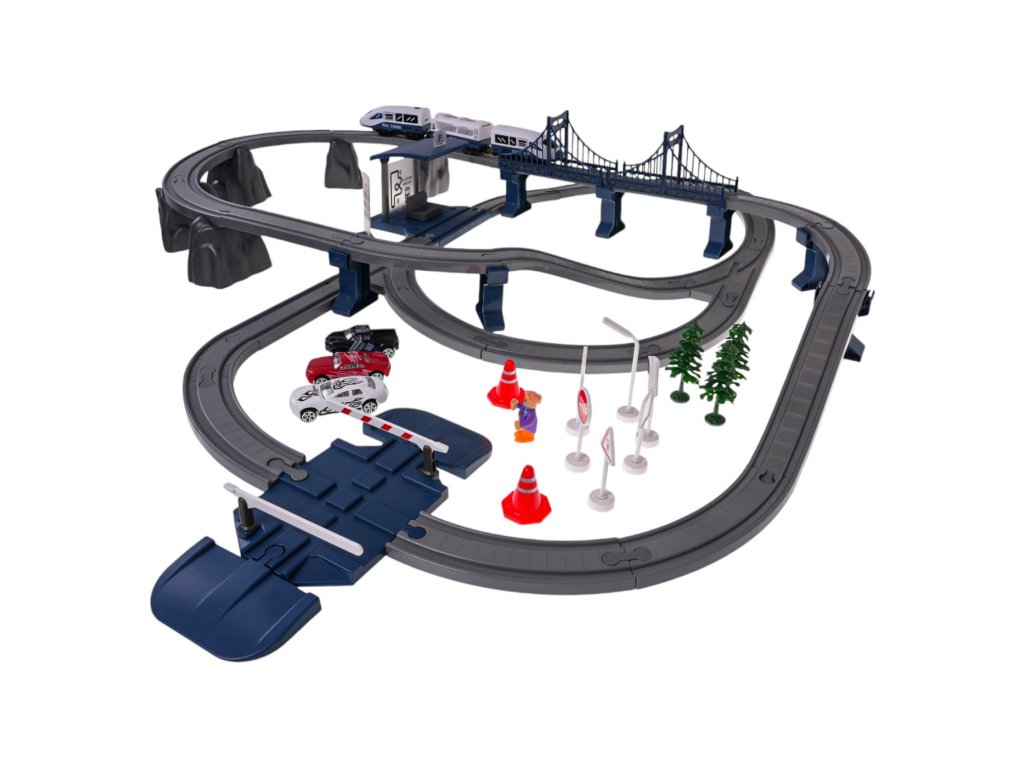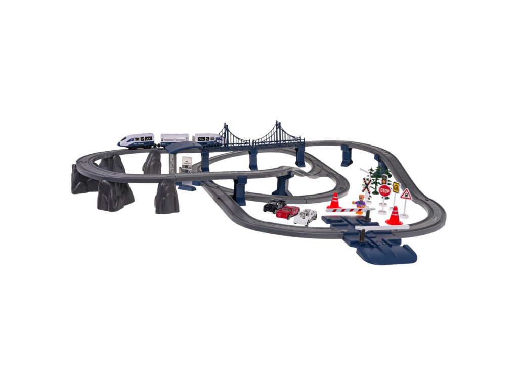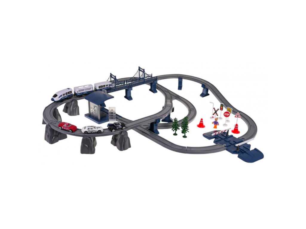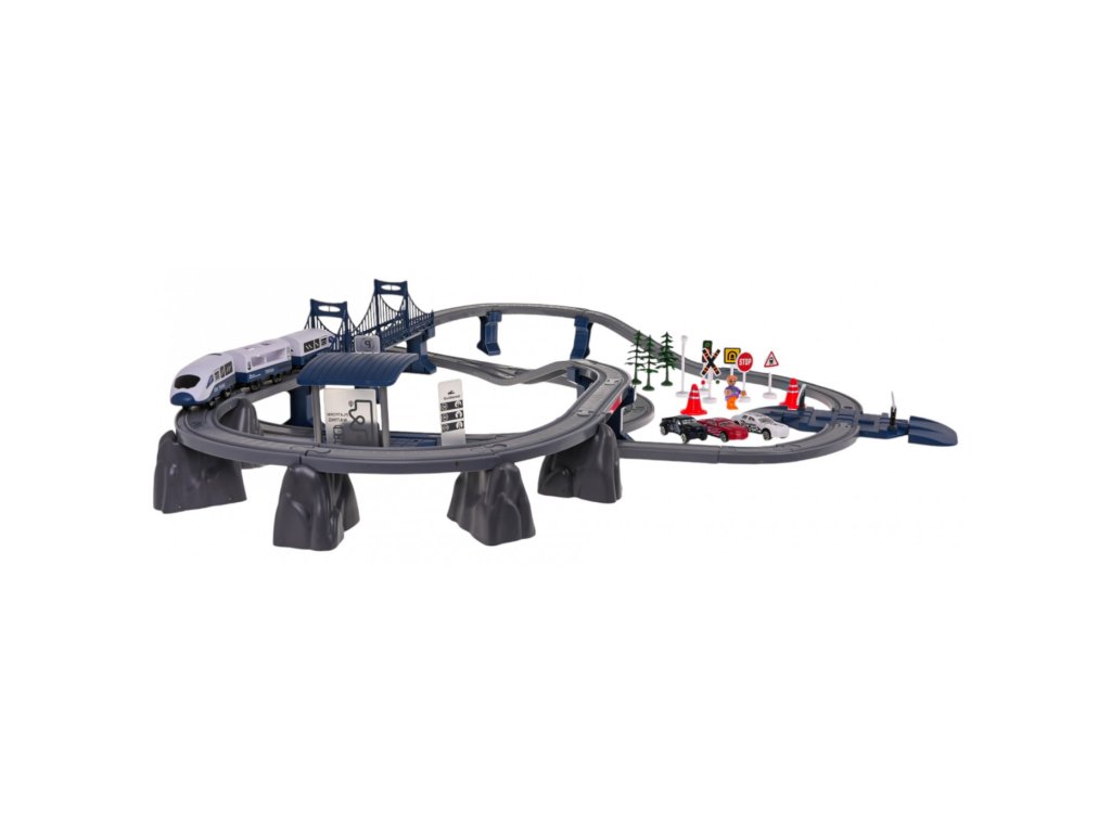Jól felszerelt vágány-, vonat- és kiegészítőkészlet 3 éves kortól gyerekeknek. A készlet a legjobb minőségű műanyagból készült, robusztus és tartós. Legfeljebb 103 elemet tartalmaz: Emeletes kollégium, vonat, állomás hang- és fényeffektus konstrukciós elemei, híd, sorompó, útjelző táblák, játékautó és fiúfigura.