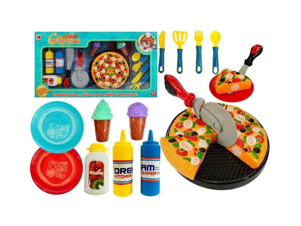 A pizza és fagylalt tálalására szolgáló készlet a következőkből áll: