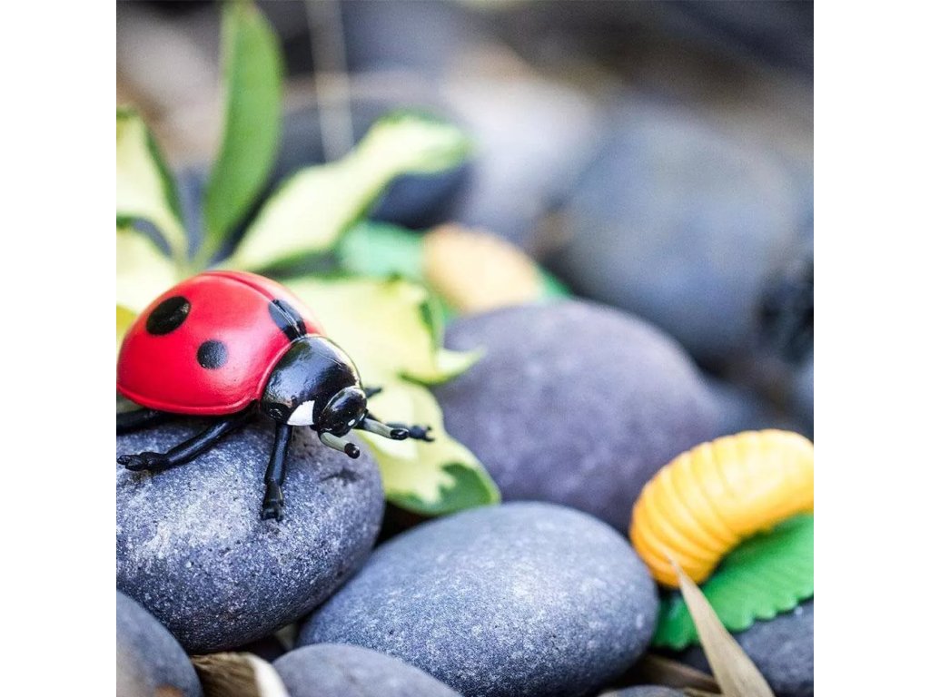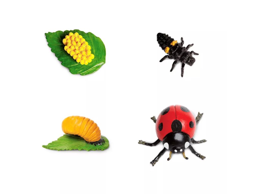 A négy modellből álló készlet a hétpettyes katica (katicabogár) fejlődésének főbb szakaszait mutatja be. Az életciklus a petékből, a lárvából, a bábból és a kifejlett egyedből áll.