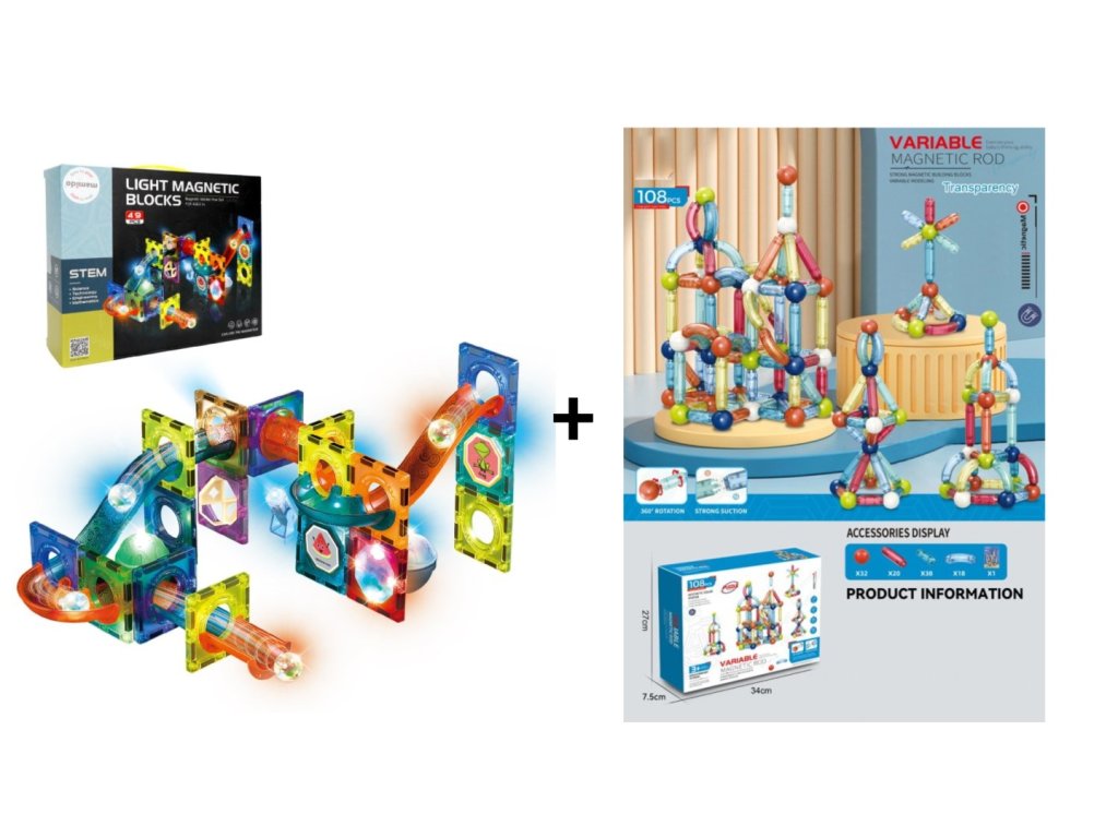 Előnyös Mágneses készlet Változtatható 108 részes építőkészlet + Világító építőkészlet labdapálya 49 részes