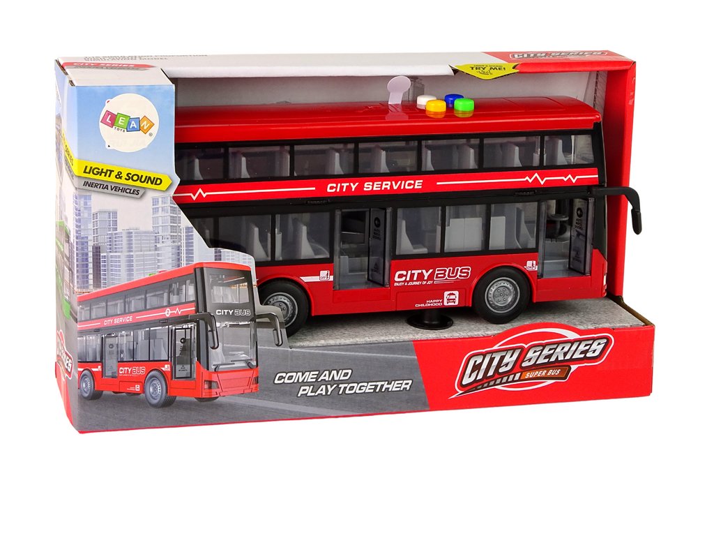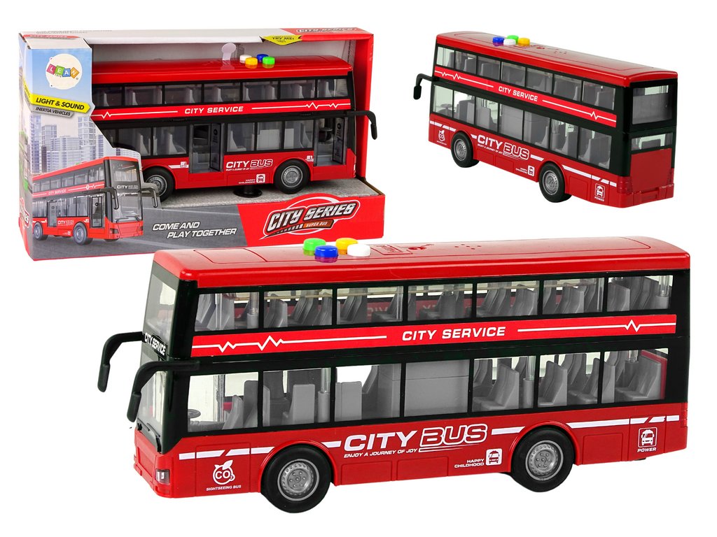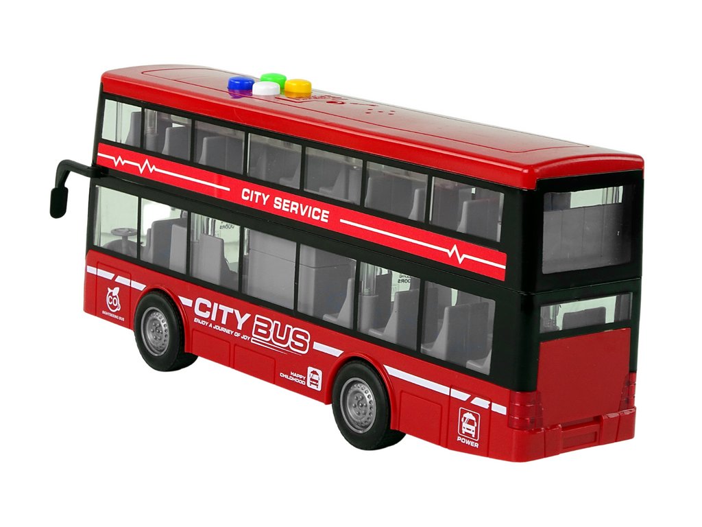 Emeletes busz effektekkel és dörzshajtással 1:16 piros
