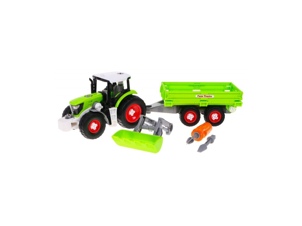 A pótkocsis építőipari traktor nem hiányozhat egyetlen fiúnak sem. A csavartraktor fejleszti a gyerekek technikai gondolkodását és finommotorikáját.