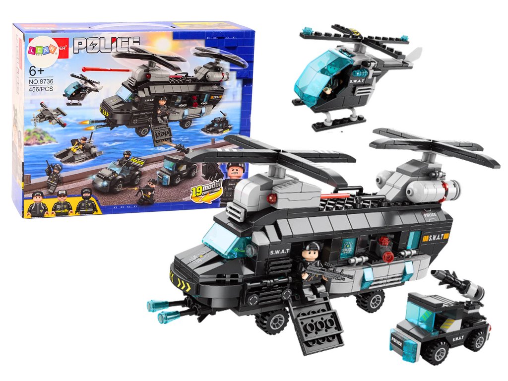 A speciális egység motívummal ellátott építőkészlet ideális termék az építkezés és a kockákkal való játék szerelmeseinek. Ez a gazdagon felszerelt készlet 456 elemet tartalmaz, amelyek lehetővé teszik a speciális műveleti egységek által használt változatos járművek és gépek létrehozását.