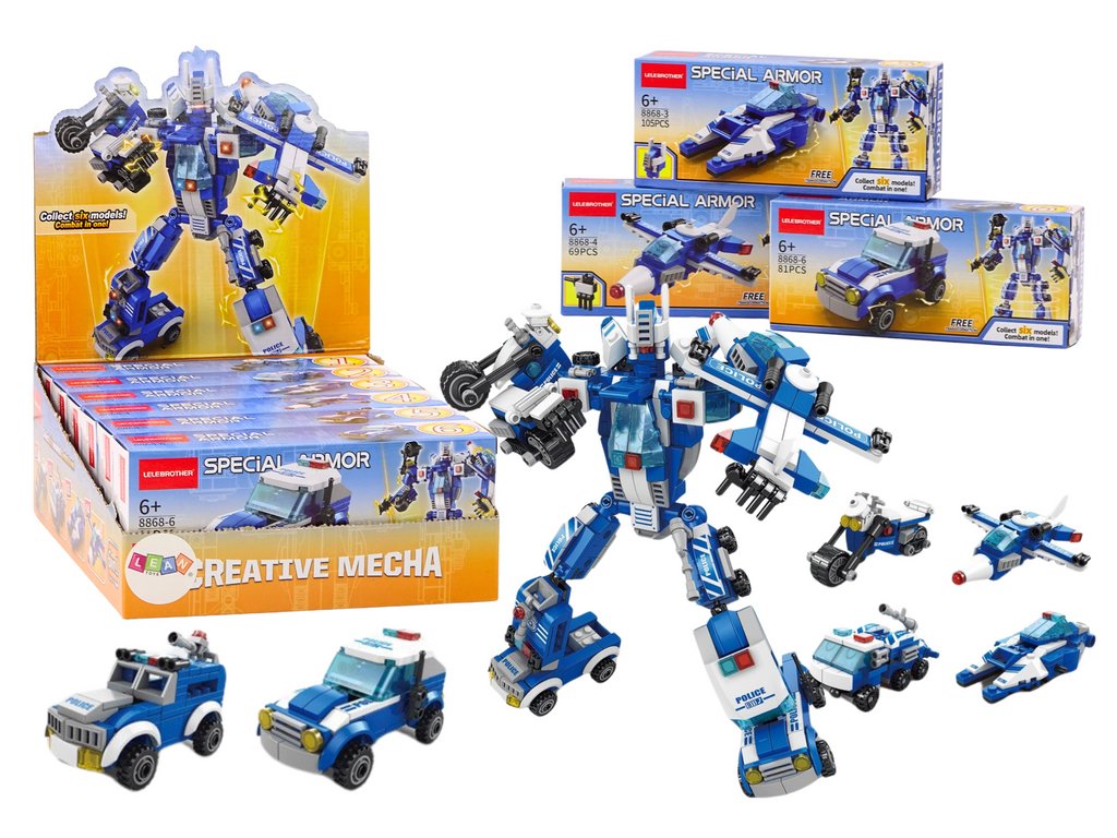 A rendőrségi járművek motívumával ellátott építőkészlet nagyszerű választás a biztonsági erők iránt érdeklődő gyermekek számára. A készlet számos modellt tartalmaz, köztük motort, csónakot, repülőt és terepjárókat, amelyek több órányi kreatív szórakozást kínálnak.