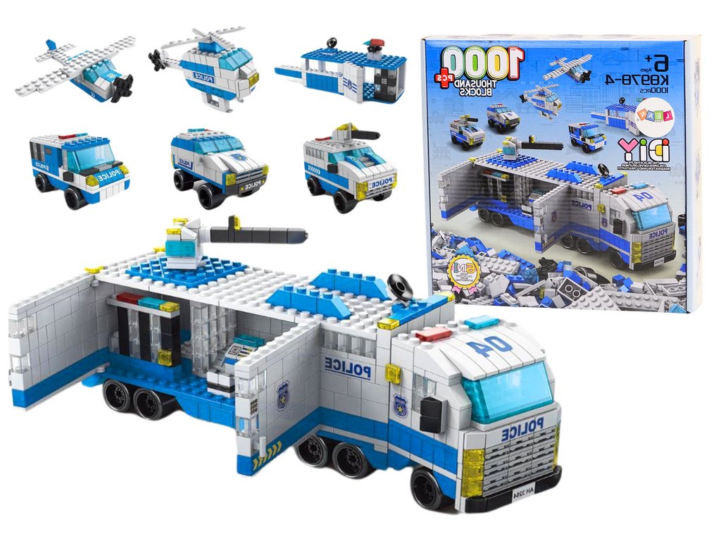 Építőkészlet Rendőrségi teherautó 6 az 1 1000 darabban