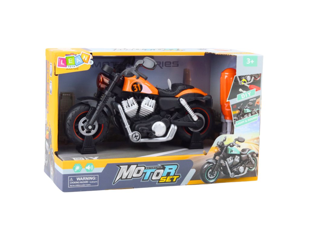 A használt fény- és hangeffektek realisztikusabbá és izgalmasabbá teszik a játékot. A gyermek igazi szerelőnek és saját járművének üzemeltetőjének érezheti magát, ami tovább serkenti képzeletét és kreativitását. Az intenzív narancssárga szín vonzza a figyelmet, és megkülönbözteti a motorkerékpárt a többi játéktól, modern megjelenést kölcsönözve neki.