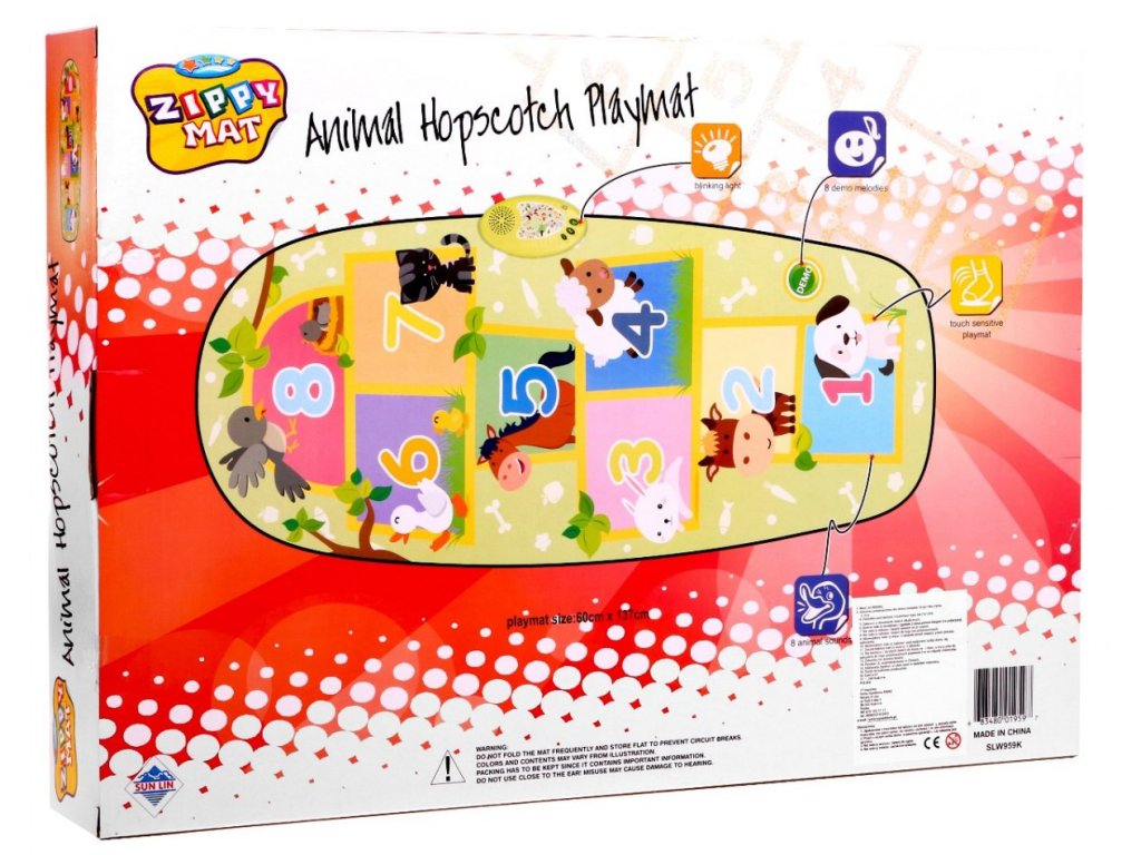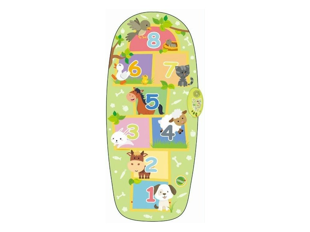 - A szőnyegen 8 nagy négyzet alakú mező található - mindegyik mezőn más-más állat található (kutya, tehén, nyuszi, bárány, ló, kacsa, cica, madarak)