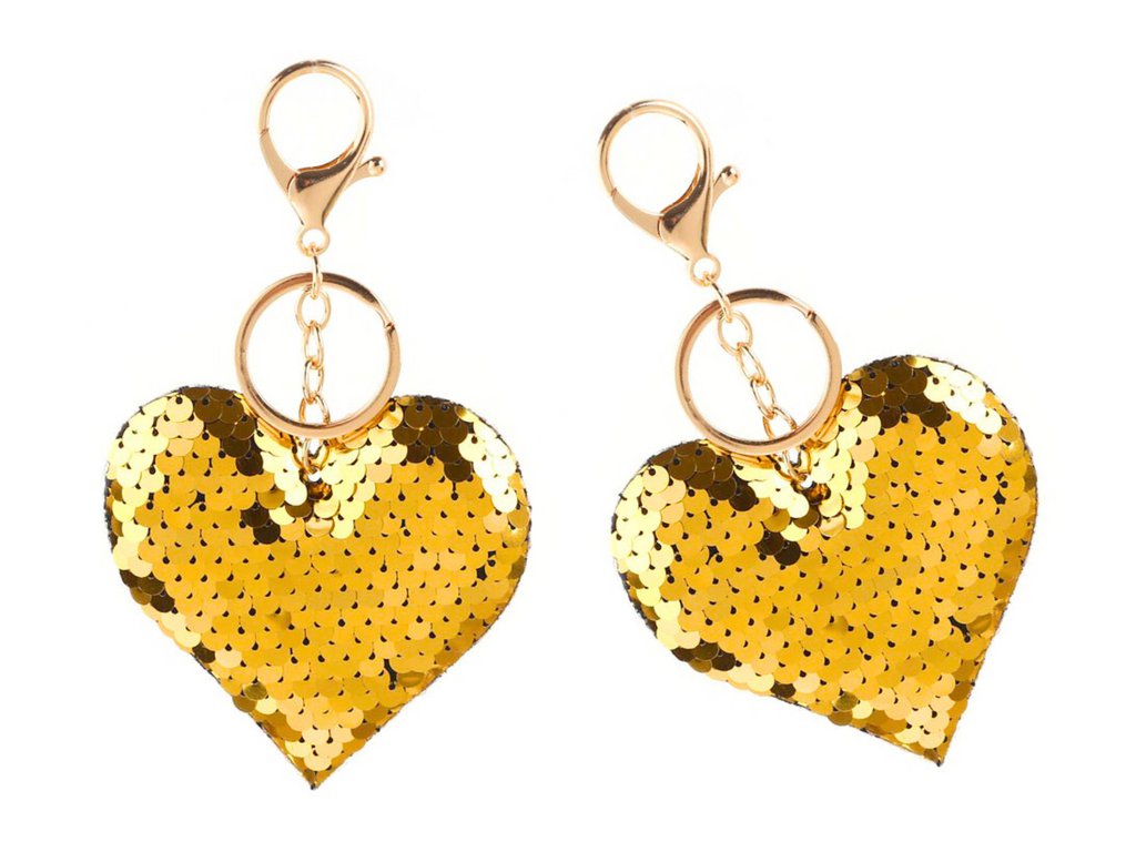 A szív alakú, kéttónusú flitterekkel díszített medál elegáns és stílusos kiegészítő. Ezt a medált arany flitterekkel díszítették, amelyek elegáns és csillogó megjelenést kölcsönöznek neki.