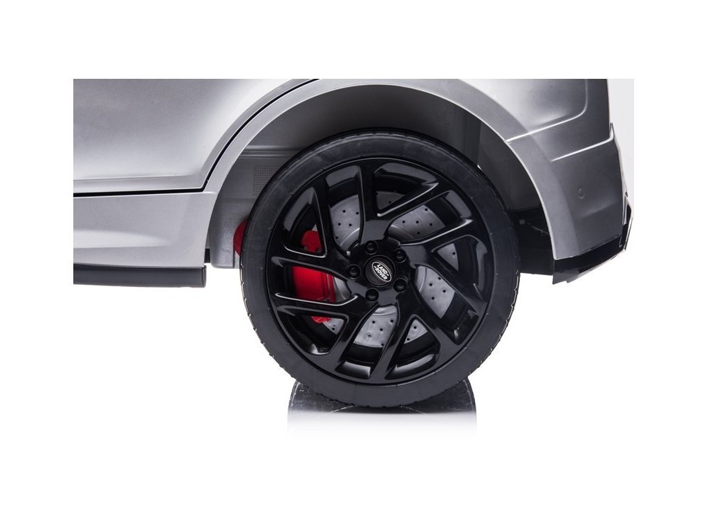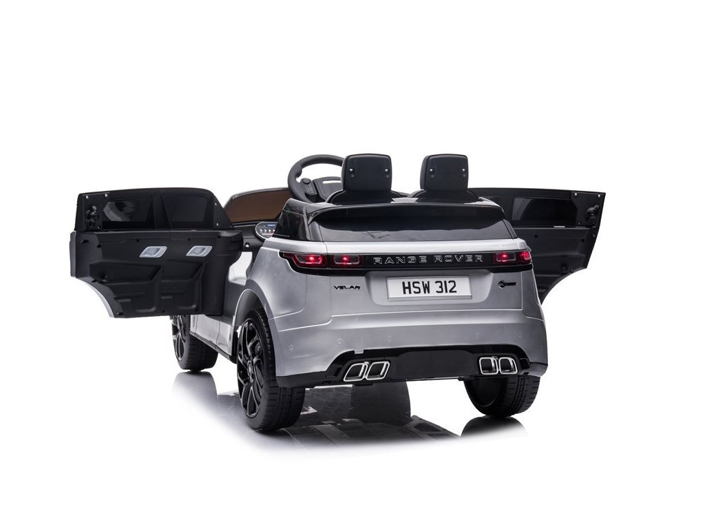 Range Rover engedéllyel rendelkező elektromos gyerekjátékautó . Kis autó minden 30 kg-ig terjedő teherbírású gyermek számára készült. Két 4 5W-os villanymotorral van felszerelve, és az EVA kerekekkel együtt különböző típusú felületeket tud kezelni. A gyermek kényelmes formájú, puha ökológiai bőrből készült ülésben ül.