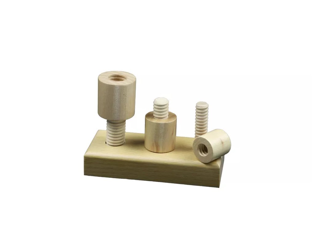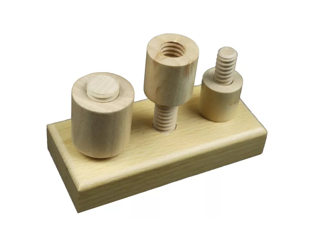 A tevékenység célja összesen 3 különböző méretű anyát felcsavarni három különböző szélességű csavarra. A tevékenység támogatja a pontos mozgás gyakorlását és a feladat önálló megoldását.