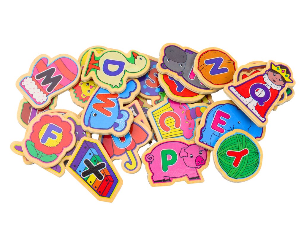 A fából készült mágneskészlet tökéletes oktatási játék gyerekeknek. 26 színes mágnest tartalmaz, amelyek mindegyike egy másik tárgyat vagy állatot ábrázol, valamint a nevével kezdődő betűt (angolul). A mágnesek kiváló minőségű fából készültek, ami garantálja biztonságukat és tartósságukat a mindennapi játék során.