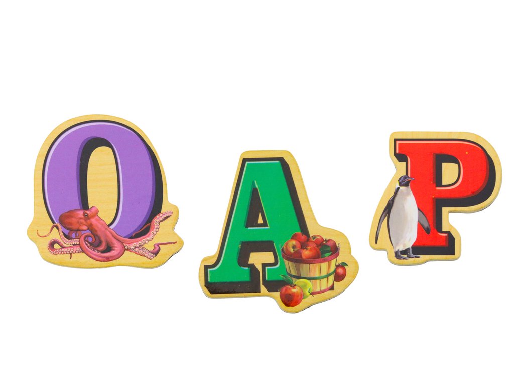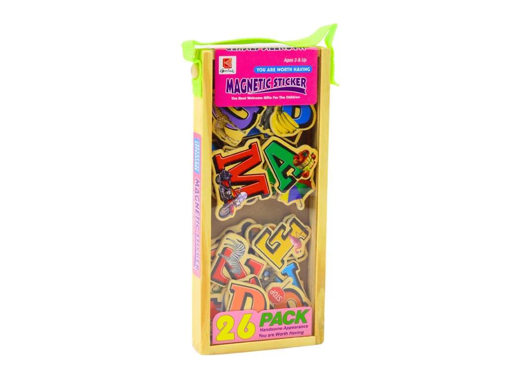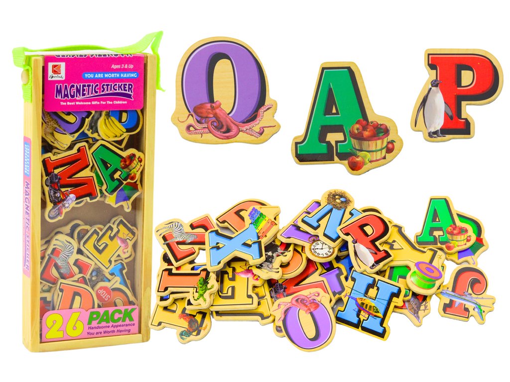 A fából készült mágneskészlet egy oktatójáték, amely 26 színes mágnest tartalmaz, amelyek mindegyike az ábécé egy-egy betűjét és a megfelelő tárgyat képviseli, amely ezzel a betűvel kezdődik. A mágnesek kiváló minőségű fából készültek, ami garantálja játék közbeni tartósságukat és biztonságukat.