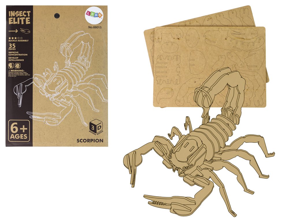 Fa puzzle háromdimenziós 3D Scorpion oktatókészlet, 35 darab